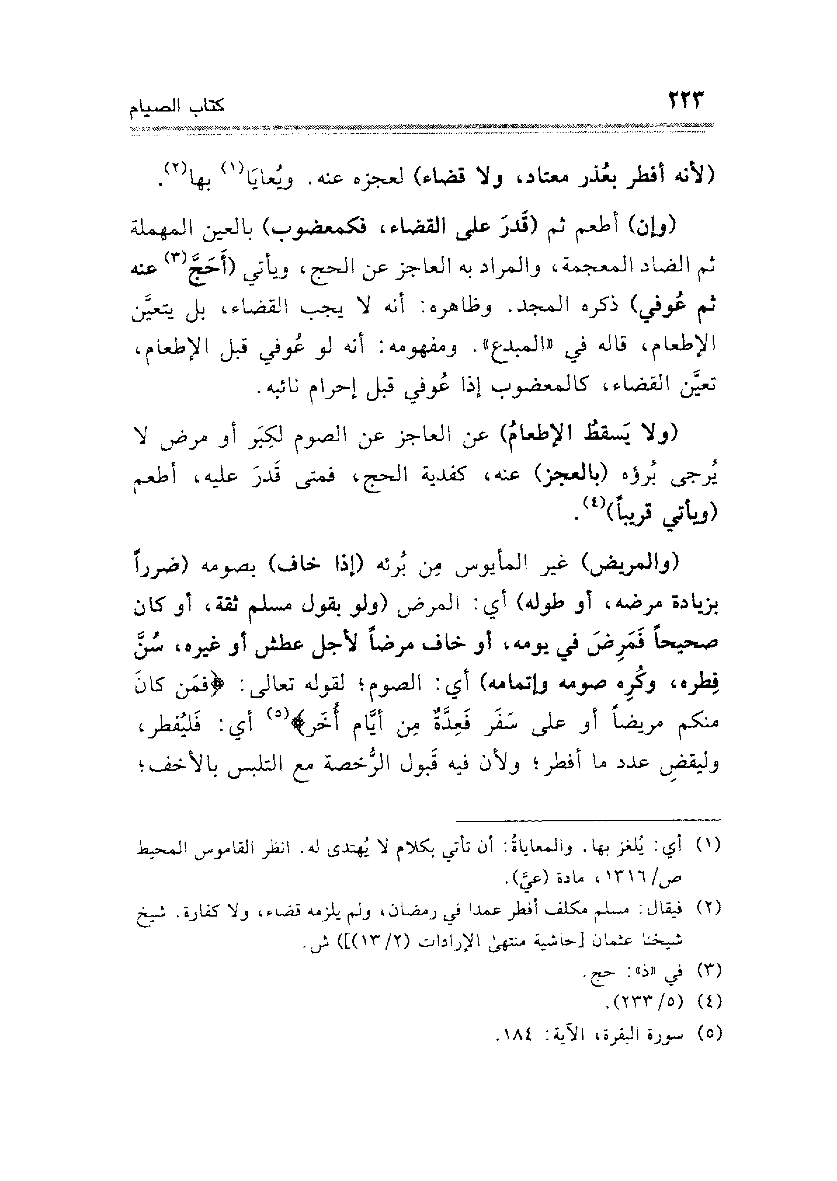(¬٥) سورة البقرة الآية: ١٨٤.