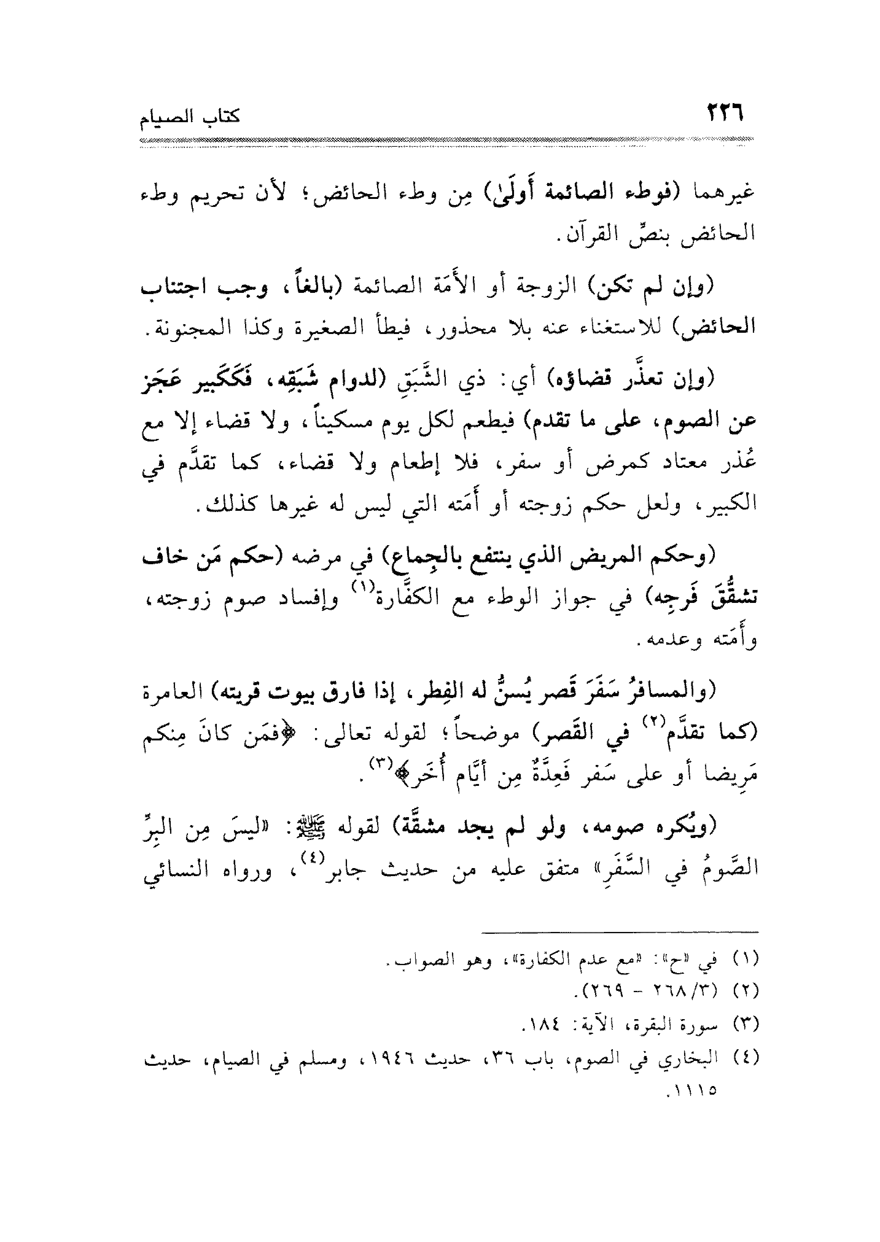 غيرهما (فوطء الصائمة أَولَى) مِن وطء الحائض؛ لأن تحريم وطء الحائض بنصِّ القرآن.