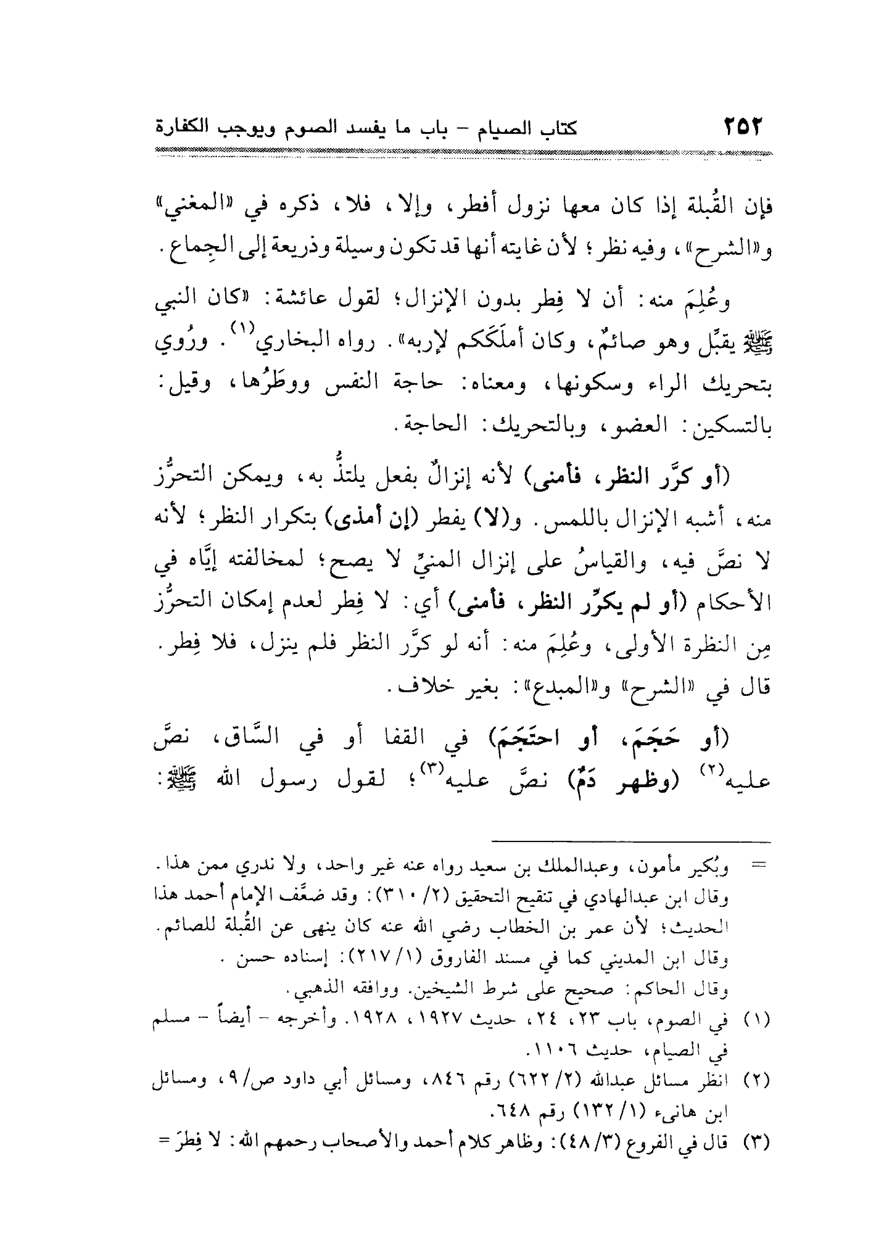 (¬٣) قال في الفروع (٣/ ٤٨): وظاهر كلام أحمد والأصحاب رحمهم الله: لا فِطر =
