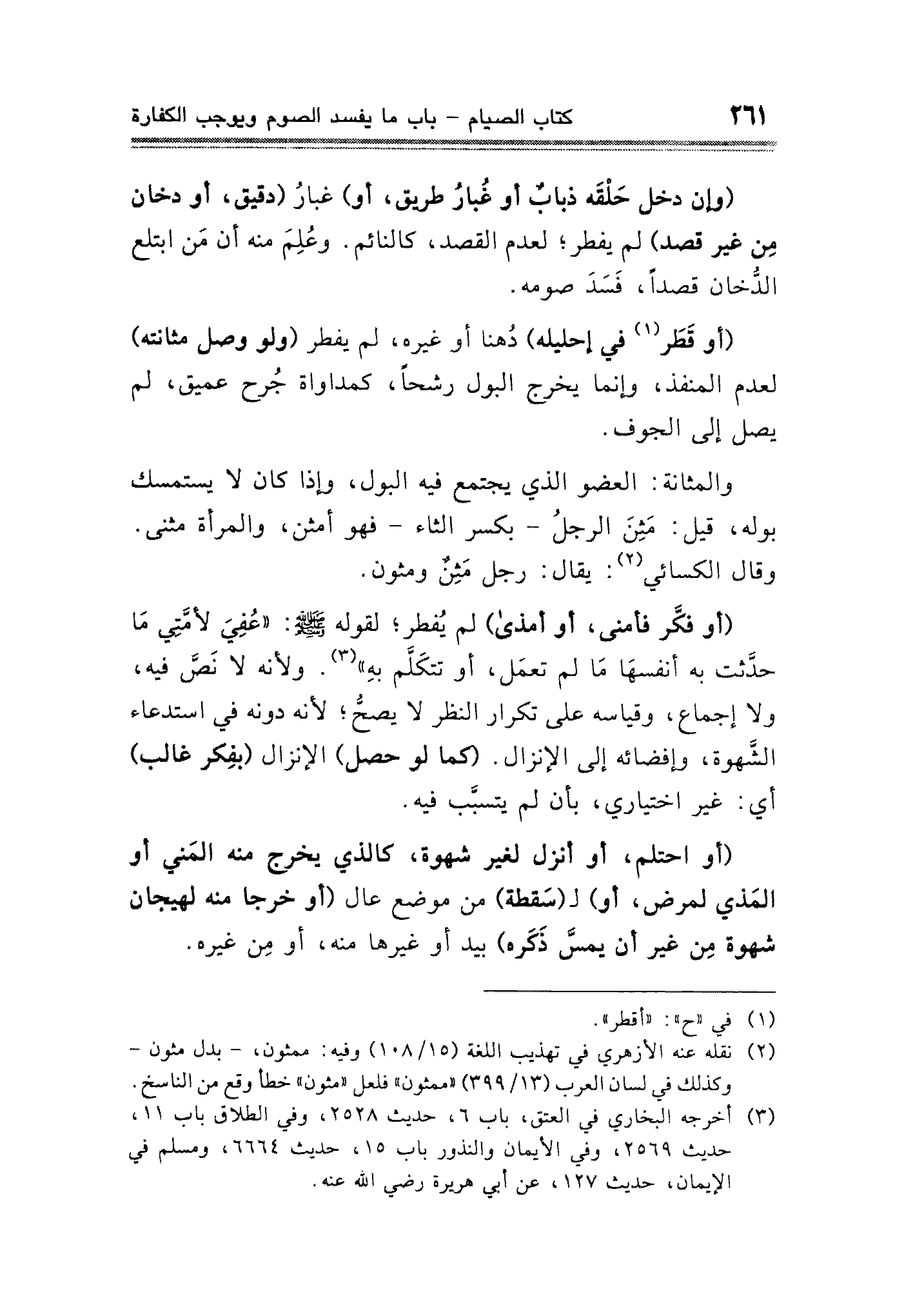 (¬٣) أخرجه البخاري في العتق، باب ٦، حديث ٢٥٢٨، وفي الطلاق باب ١١، حديث ٢٥٦٩، وفي الأيمان والنذور باب ١٥، حديث ٦٦٦٤، ومسلم في الإيمان، حديث ١٢٧، عن أبي هريرة - رضي الله عنه -.