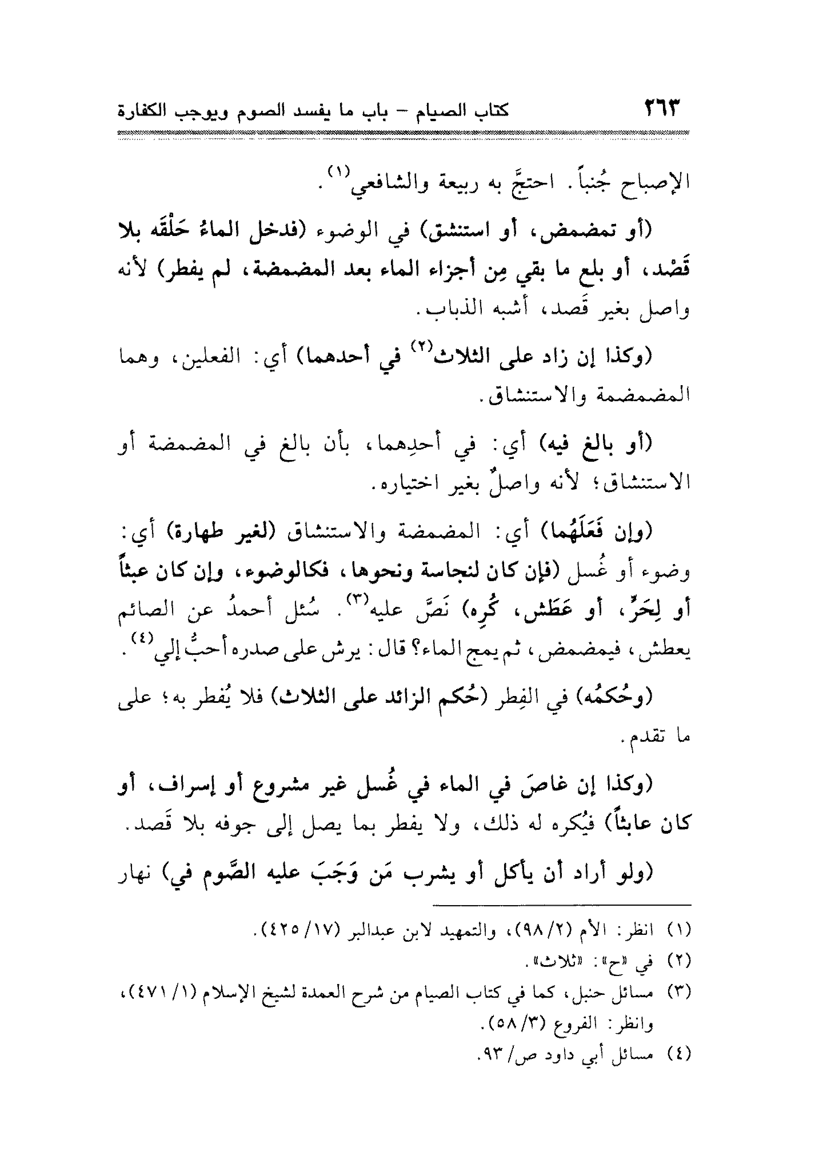 (¬٣) مسائل حنبل، كما في كتاب الصيام من شرح العمدة لشيخ الإِسلام (١/ ٤٧١)، وانظر: الفروع (٣/ ٥٨).