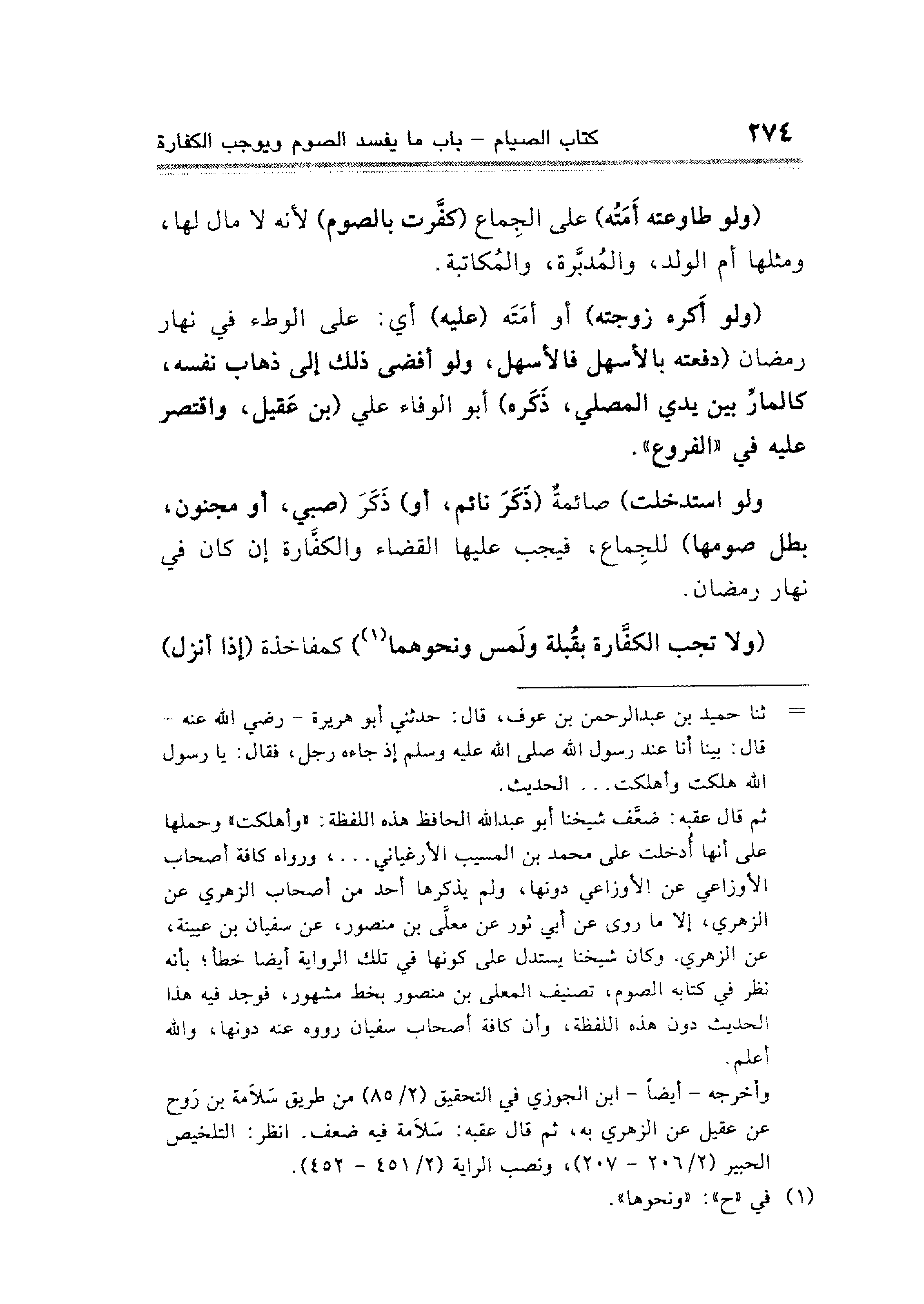 (ولو أَكره زوجته) أو أمَتَه (عليه) أي: على الوطء في نهار رمضان (دفعته بالأسهل فالأسهل، ولو أفضى ذلك إلى ذهاب نفسه، كالمارِّ بين يدي المصلي، ذَكَره) أبو الوفاء علي (بن عقيل، واقتصر عليه في "الفروع".
