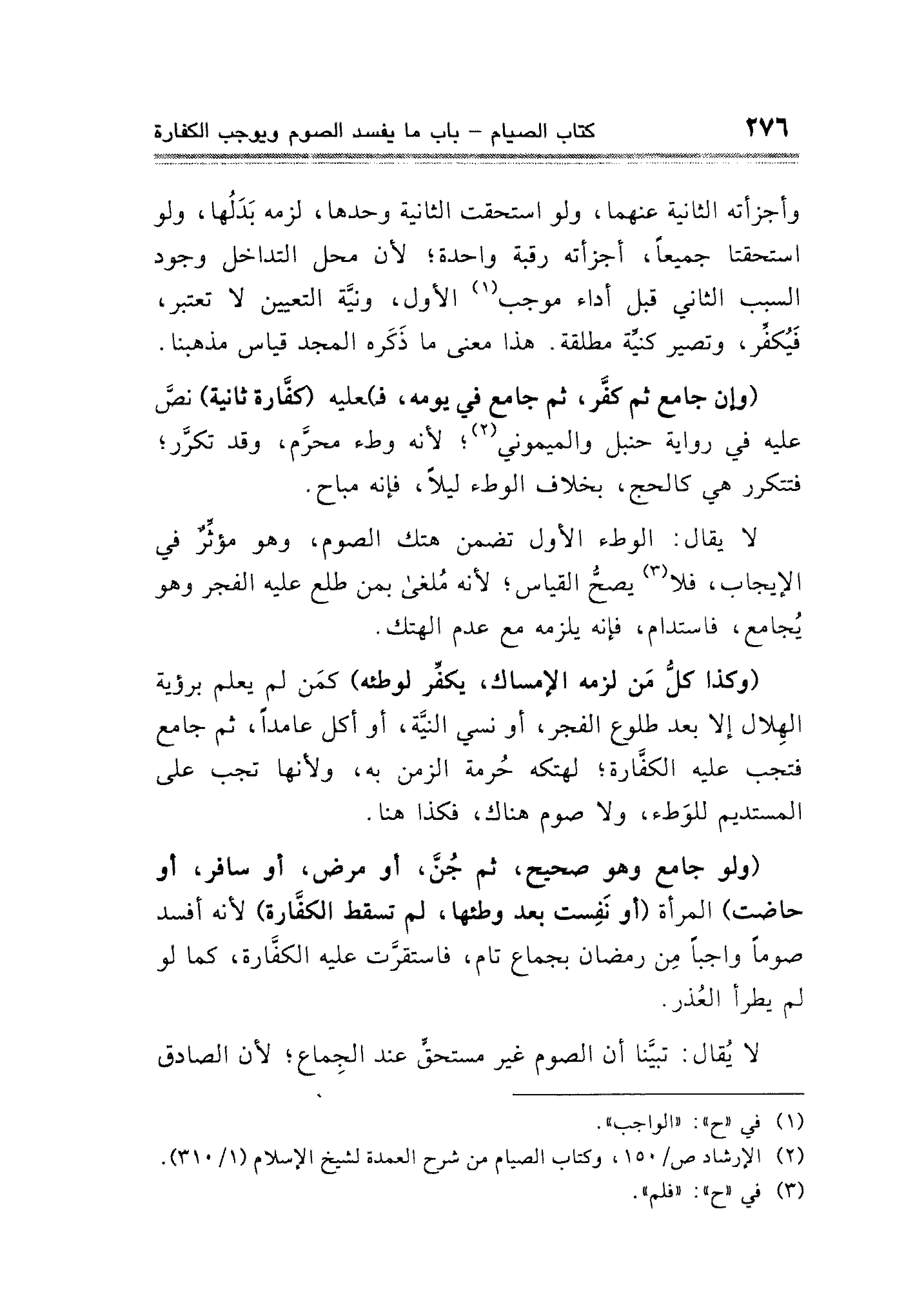 (¬٢) الإرشاد ص / ١٥٠، وكتاب الصيام من شرح العمدة لشيخ الإسلام (١/ ٣١٠).