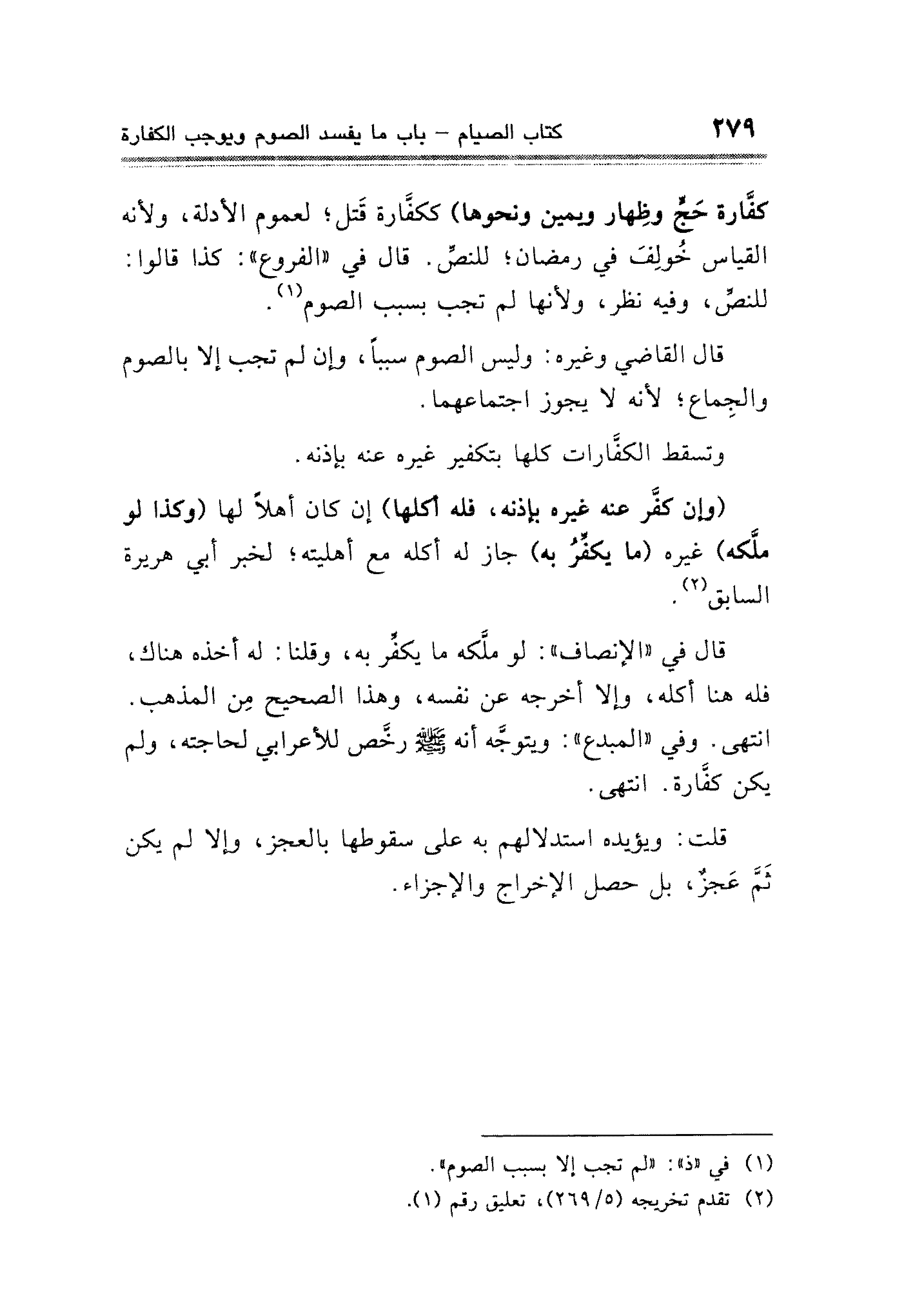 (¬١) في "ذ": "لم تجب إلا بسبب الصوم".