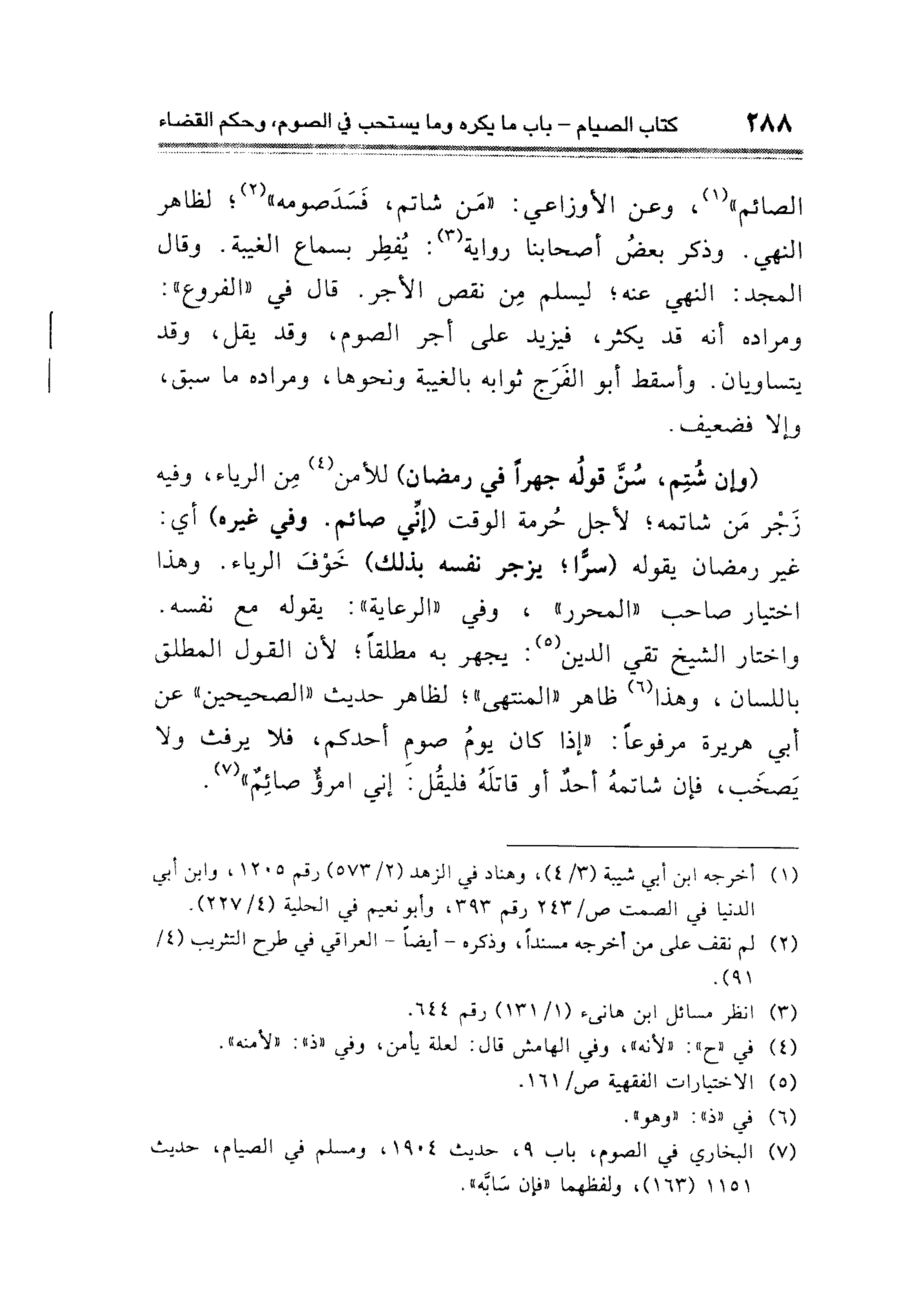 (¬٧) البخاري في الصوم، باب ٩، حديث ١٩٠٤، ومسلم في الصيام، حديث ١١٥١ (١٦٣)، ولفظهما "فإن سَابَّه".