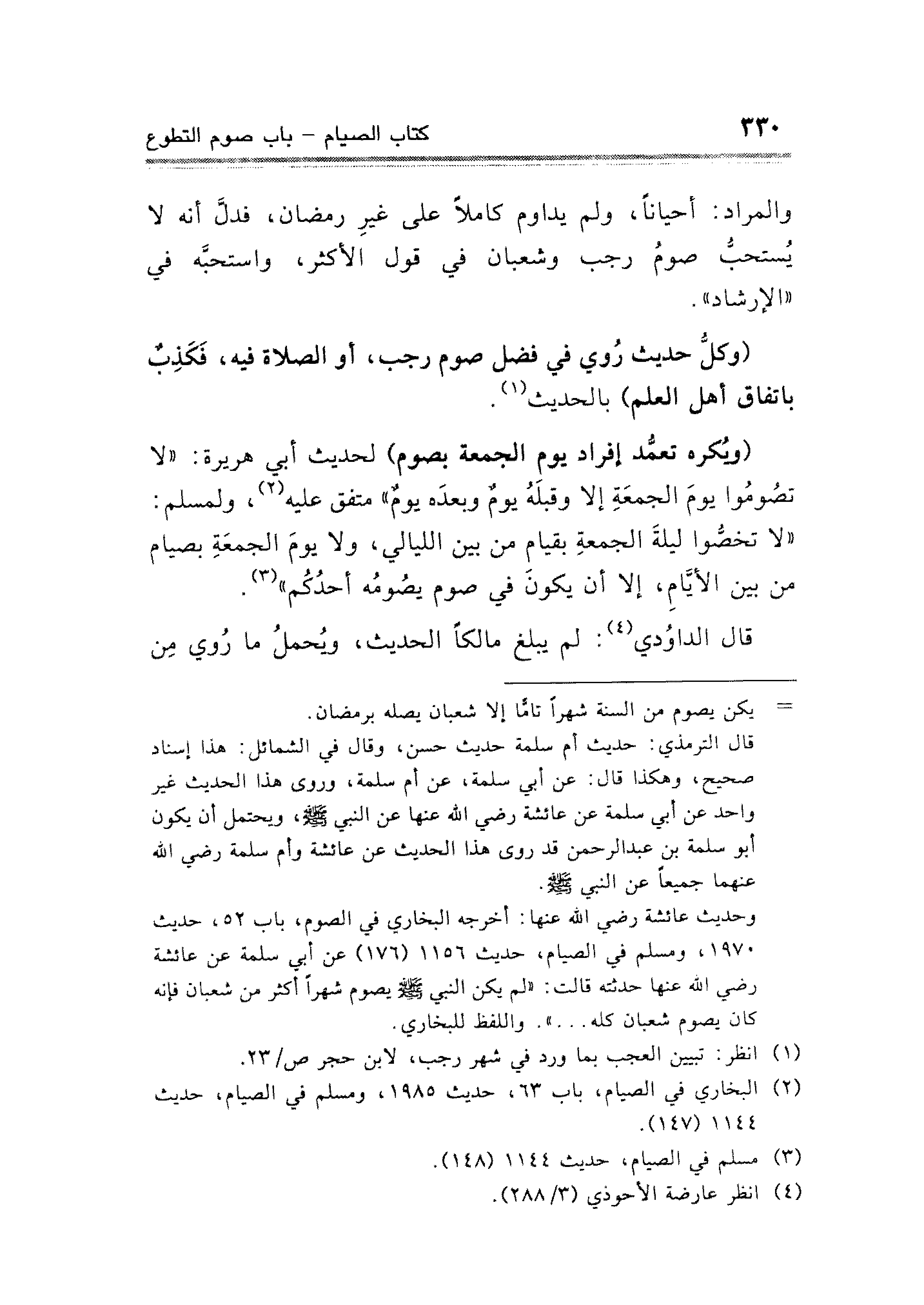 (¬١) انظر: تبيين العجب بما ورد في شهر رجب، لابن حجر ص / ٢٣.