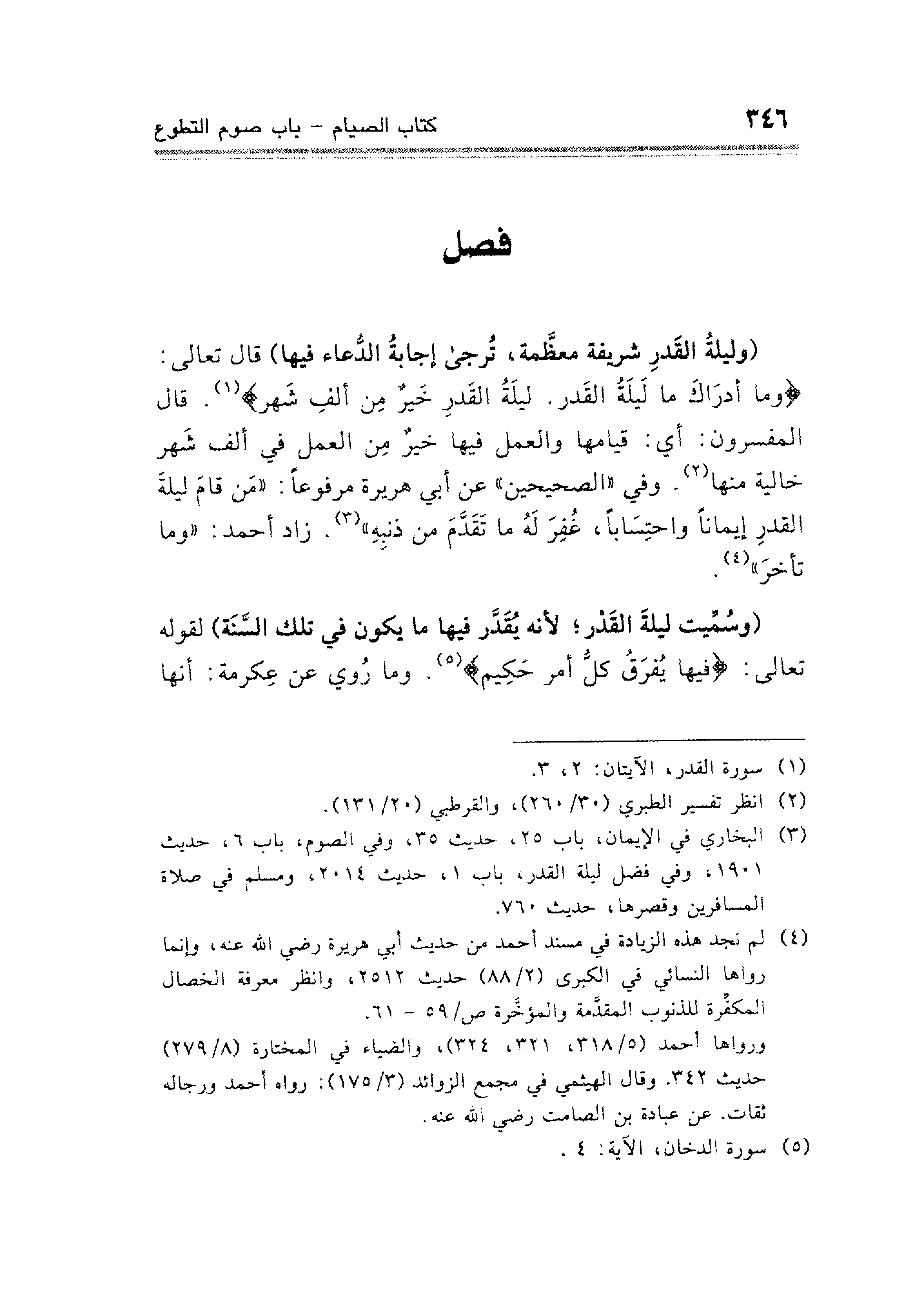 (¬٣) البخارى في الإيمان، باب ٢٥، حديث ٣٥، وفي الصوم، باب ٦، حديث ١٩٠١، وفي فضل ليلة القدر، باب ١، حديث ٢٠١٤، ومسلم في صلاة المسافرين وقصرها، حديث ٧٦٠.