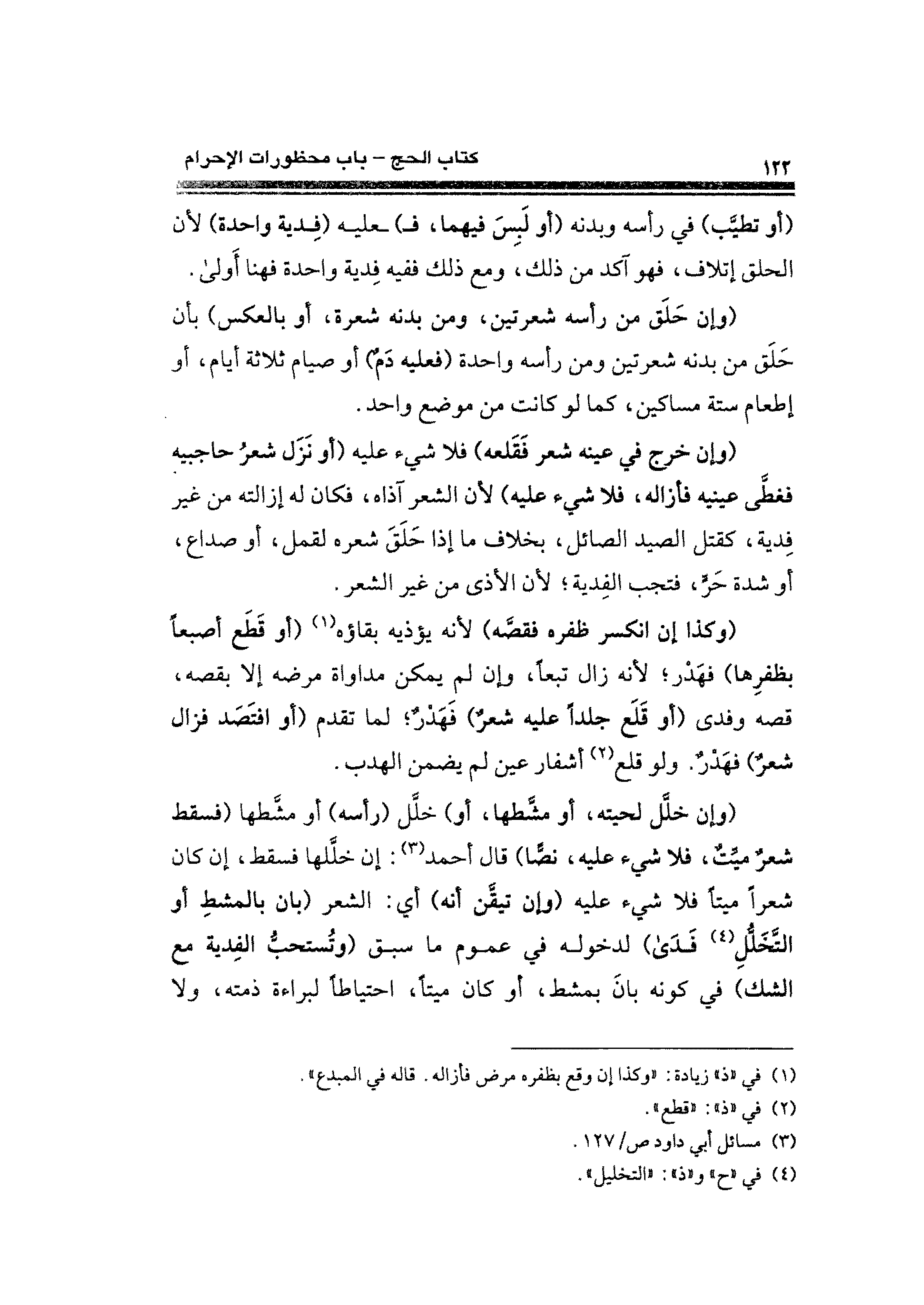 (¬١) في "ذ" زيادة: "وكذا إن وقع بظفره مرض فأزاله. قاله في المبدع".