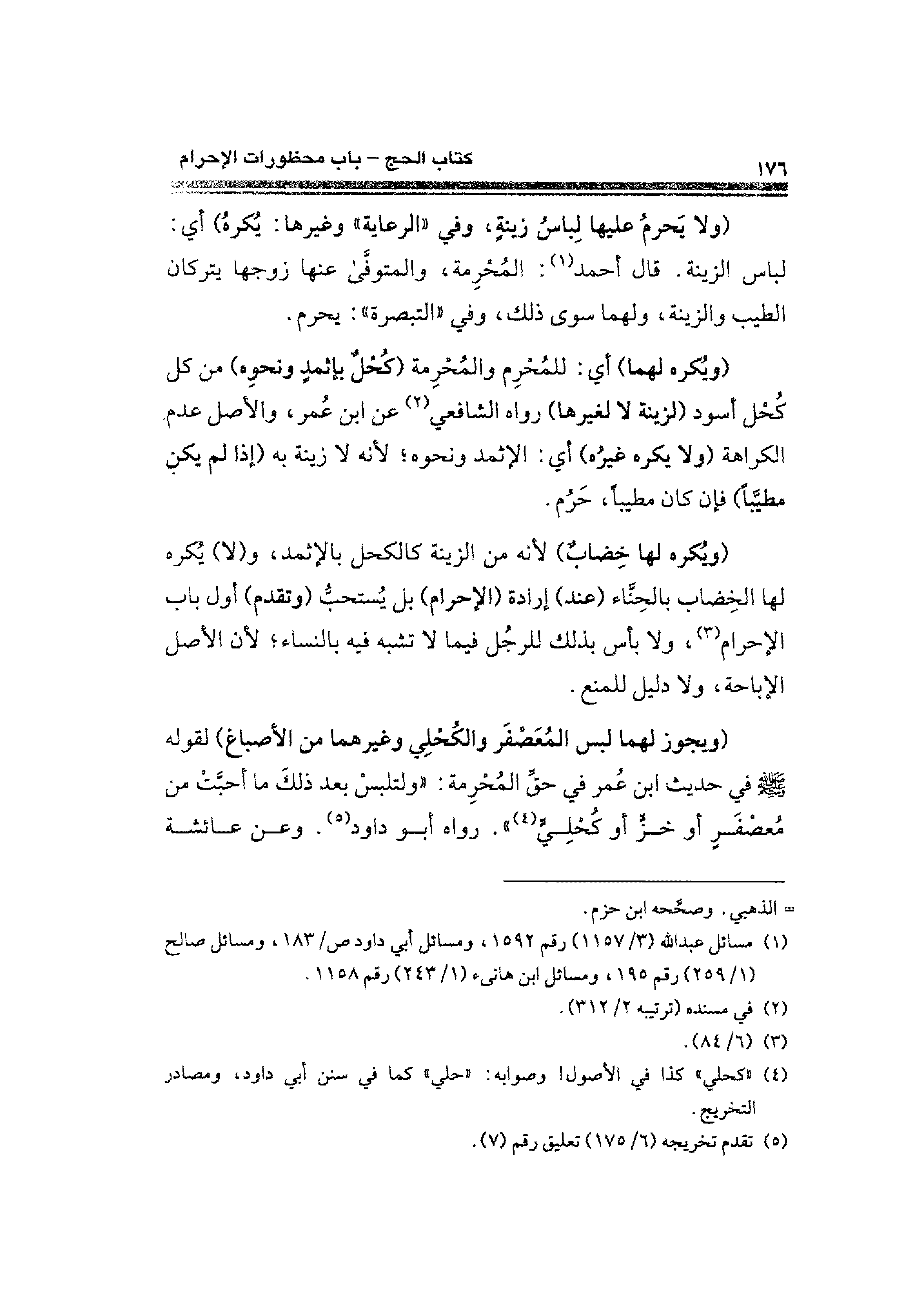 (ولا يَحرمُ عليها لِباسُ زينةٍ، وفي "الرعاية" وغيرها: يُكرهُ) أي: لباس الزينة. قال. أحمد (¬١): المُحْرِمة، والمتوفَّى عنها زوجها يتركان الطيب والزينة، ولهما سوى ذلك، وفي "التبصرة": يحرم.