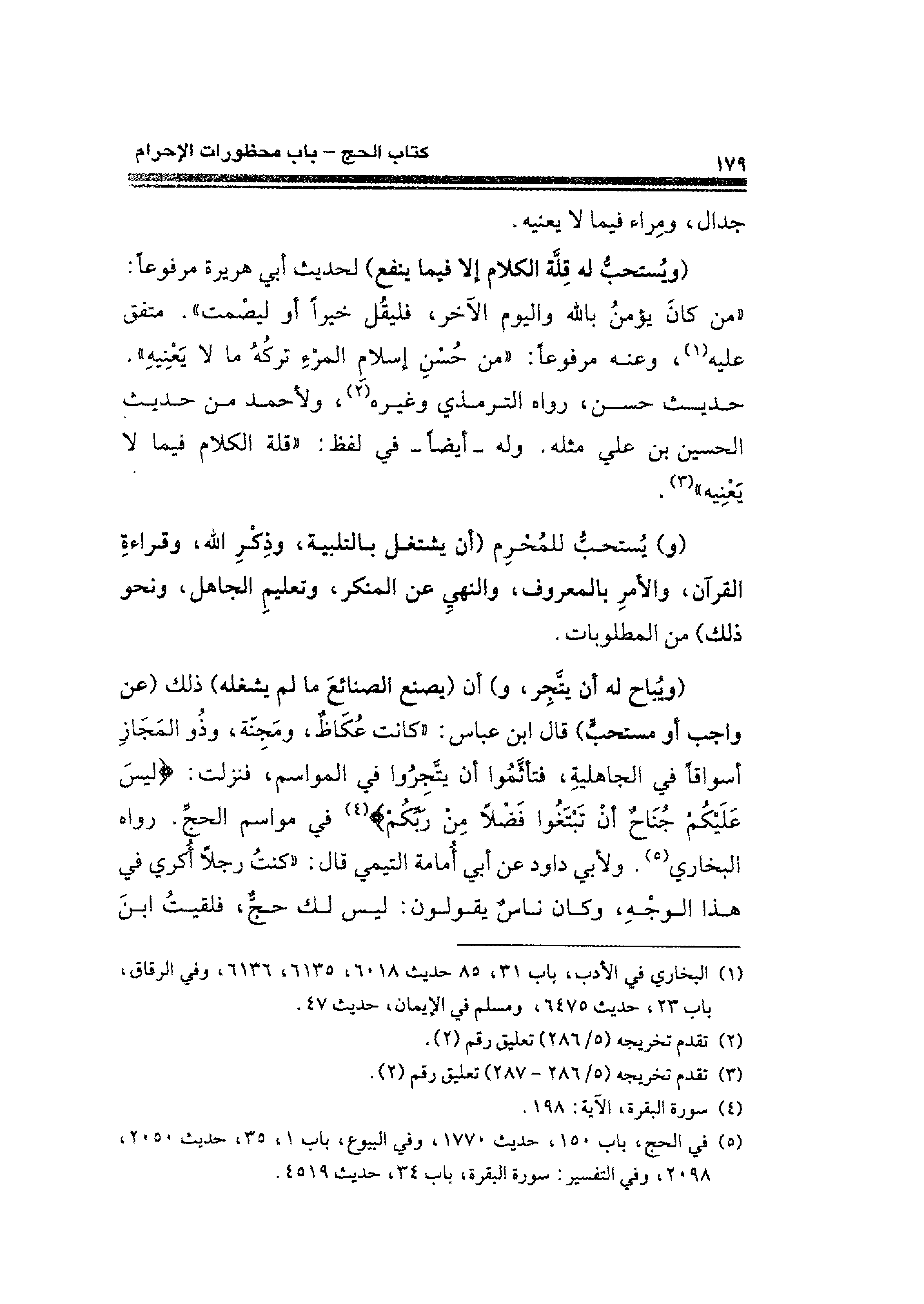 (¬٥) في الحج، باب ١٥٠، حديث ١٧٧٠، وفي البيوع، باب ١، ٣٥، حديث ٢٠٥٠، ٢٠٩٨، وفي التفسير: سورة البقرة، باب ٣٤، حديث ٤٥١٩.