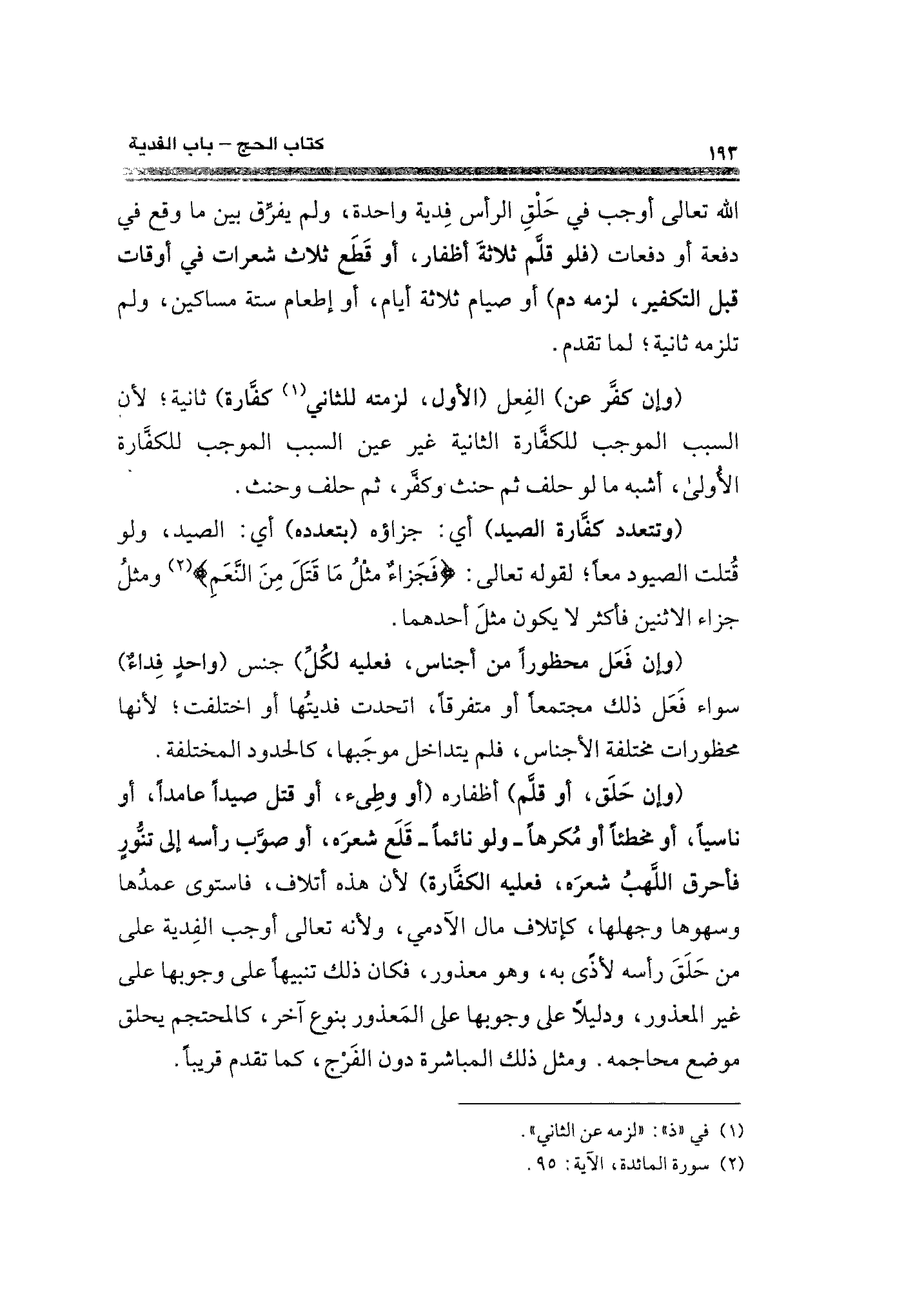 (¬٢) سورة المائدة، الآية: ٩٥.