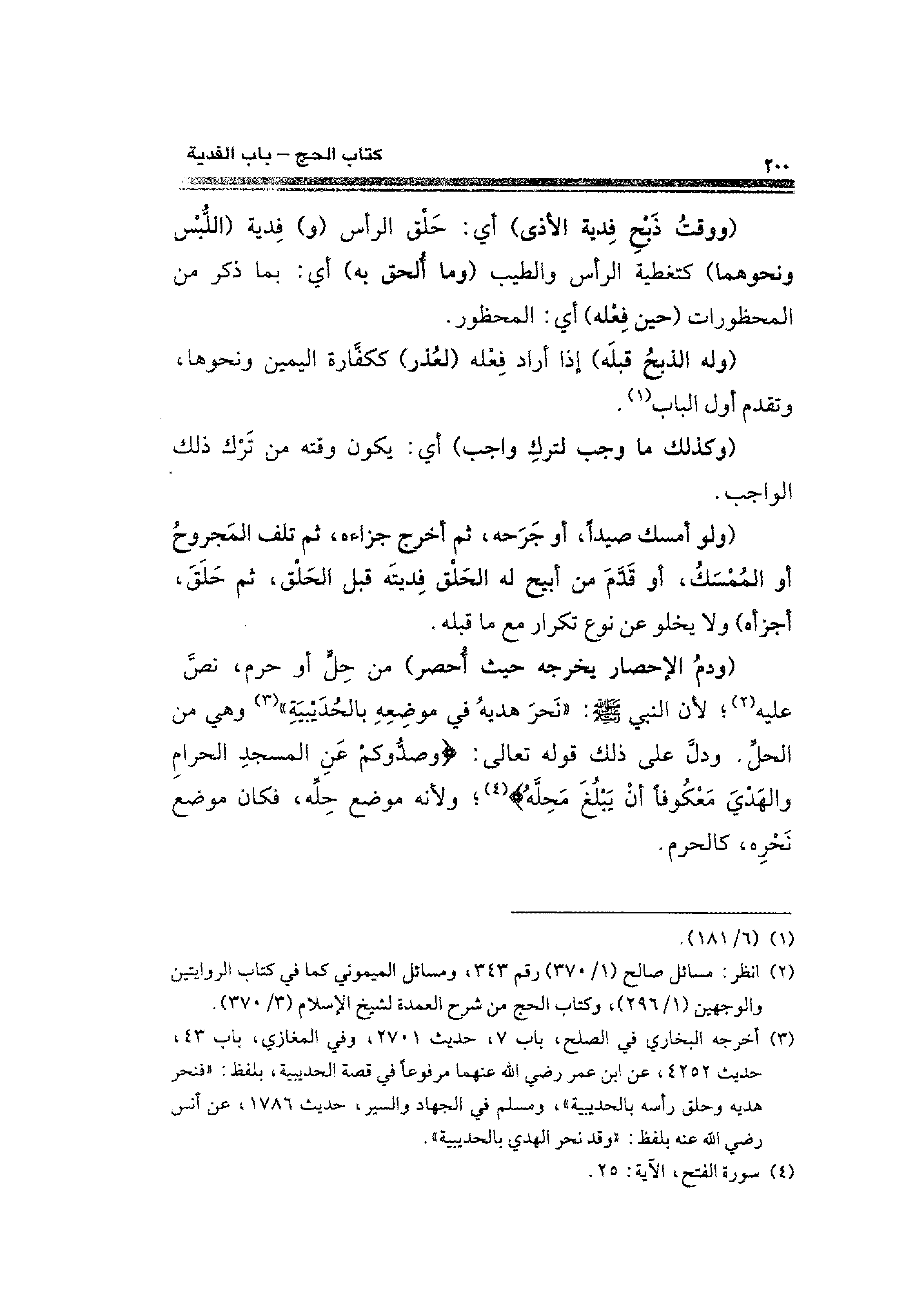 (¬٣) أخرجه البخاري في الصلح، باب ٧، حديث ٢٧٠١، وفي المغازي، باب ٤٣، حديث ٤٢٥٢، عن ابن عمر رضي الله عنهما مرفوعًا في قصة الحديبية، بلفظ: "فنحر هديه وحلق رأسه بالحديبية"، ومسلم في الجهاد والسير، حديث ١٧٨٦، عن أنس رضي الله عنه بلفظ: "وقد نحر الهدي بالحديبية".