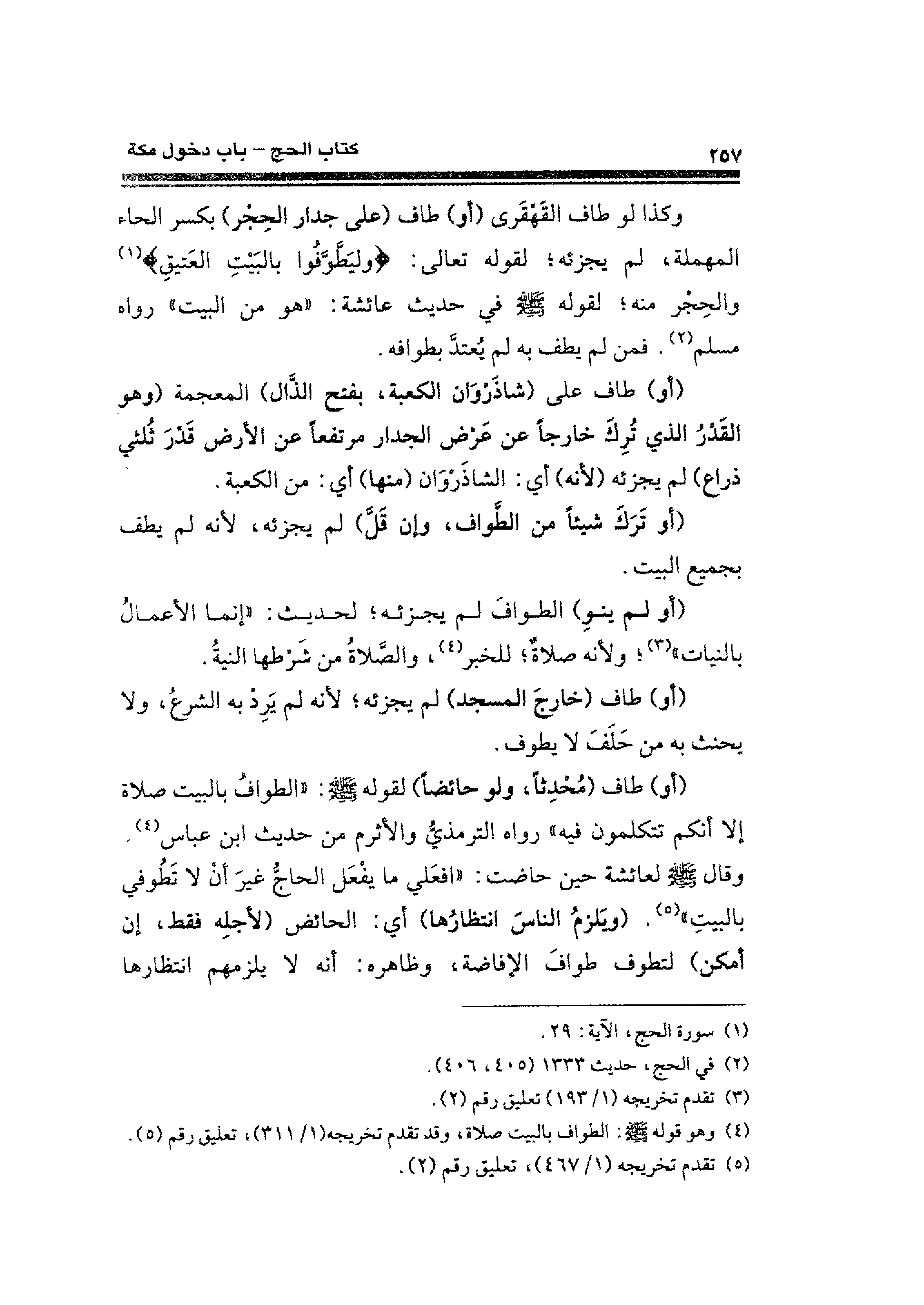 (¬٤) وهو قوله - صلى الله عليه وسلم -: الطواف بالبيت صلاة، وقد تقدم تخريجه (١/ ٣١١)، تعليق رقم (٥).