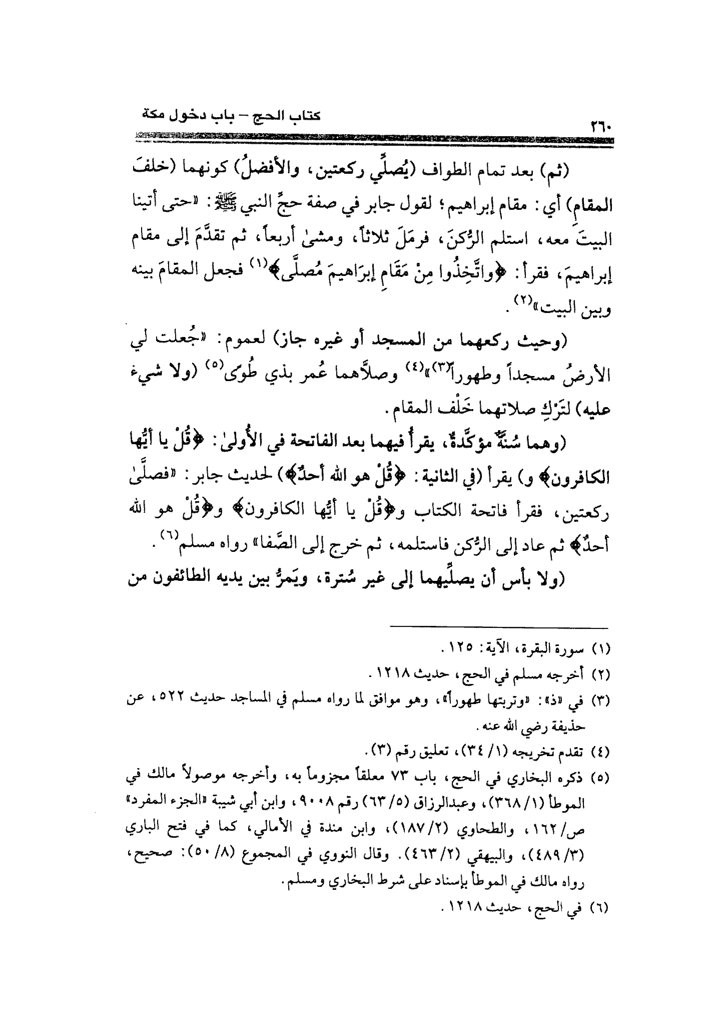 (وحيث ركعهما من المسجد أو غيره جاز) لعموم: "جُعلت لي الأرضُ مسجدًا وطهورًا (¬٣) " (¬٤) وصلَّاهما عُمر بذي طُوًى (¬٥) (ولا شيء عليه) لتَرْكِ صلاتهما خَلْف المقام.