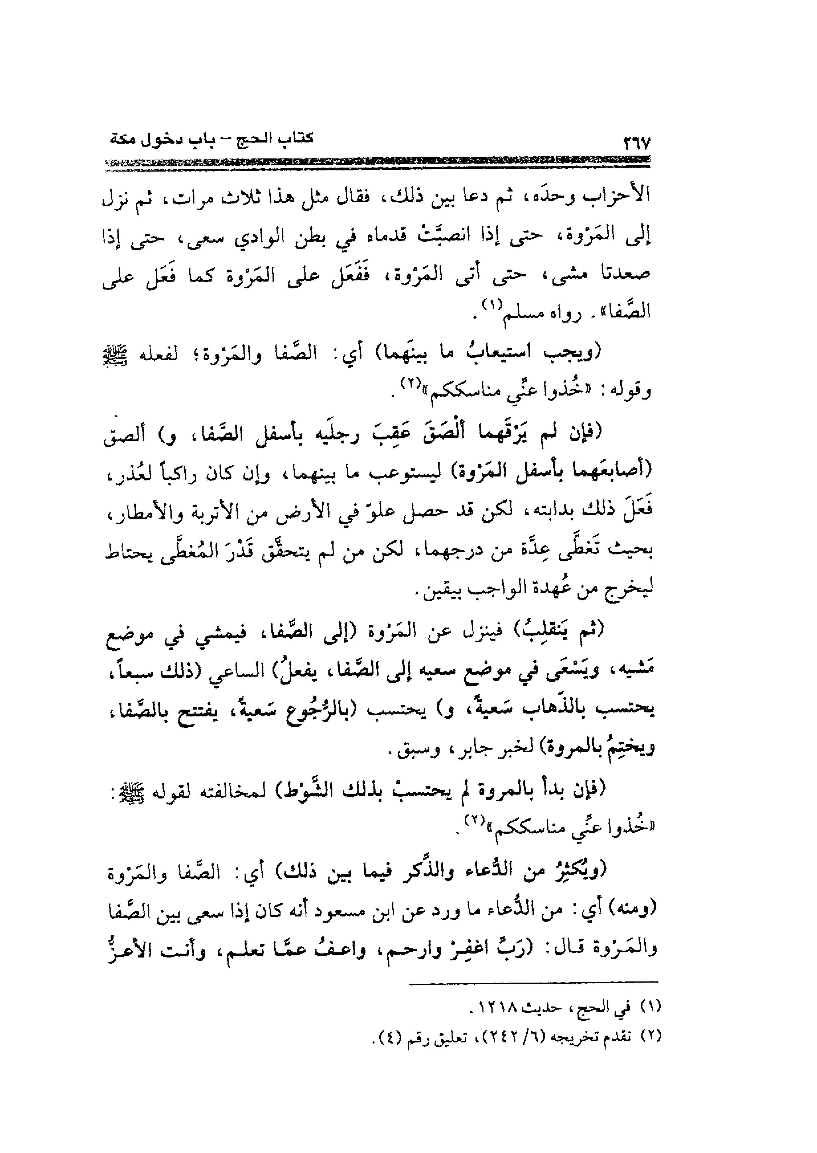 (ويُكْثِرُ من الدُّعاء والذكر فيما بين ذلك) أي: الصَّفا والمَرْوة (ومنه) أي: عن الدُّعاء ما ورد عن ابن مسعود أنه كان إذا سعى الصَّفا والمَروة قال: (رَبِّ اغفِرْ وارحم، واعفُ عمَّا تعلم، وأنت الأعزُّ