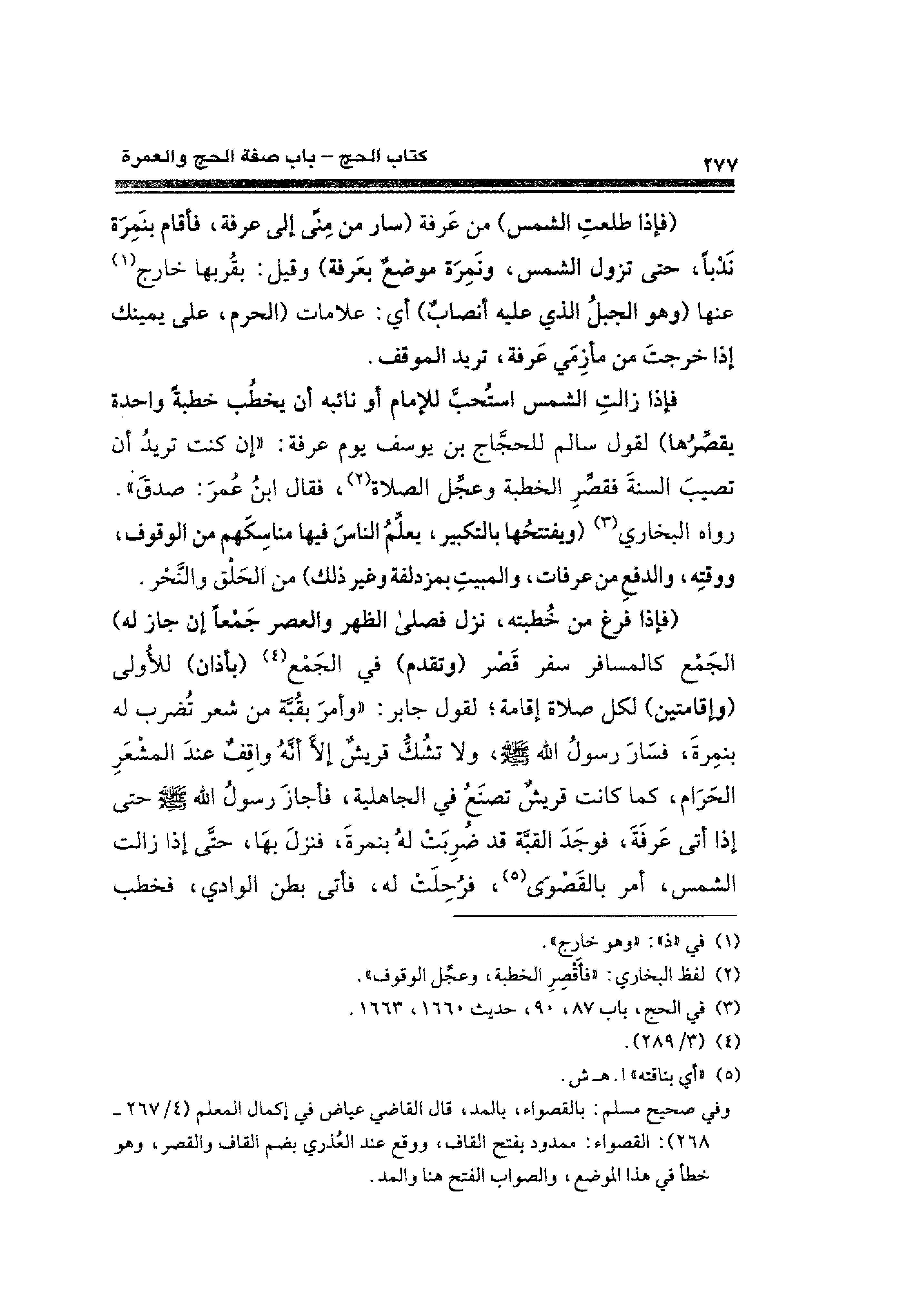(¬٢) لفظ البخاري: "فأَقْصِرِ الخطبة، وعجِّل الوقوف".