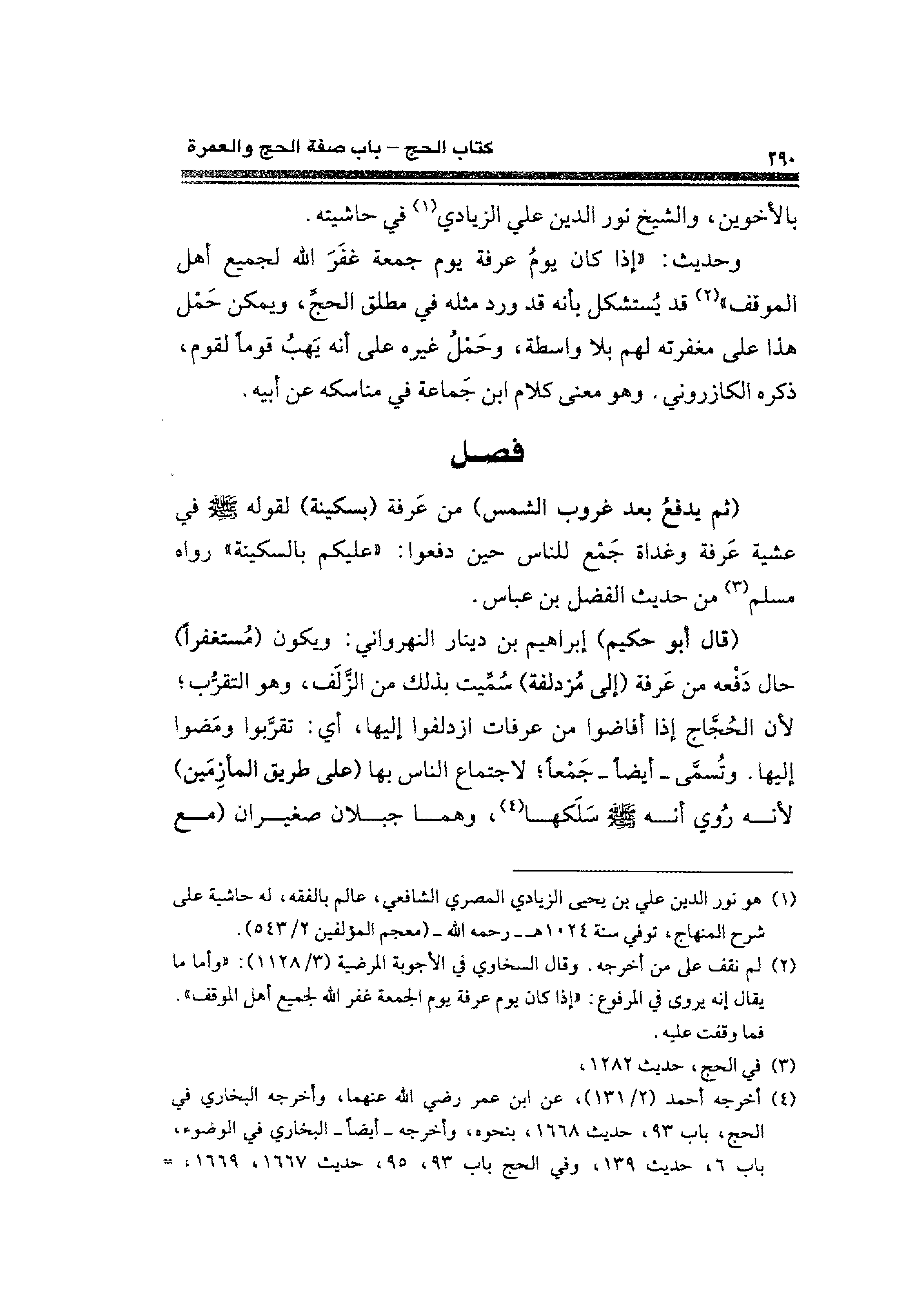 (¬١) هو نور الدين علي بن يحيى الزيادي المصري الشافعي، عالم بالفقه، له حاشية على شرح المنهاج، توفي سنة ١٠٢٤ هـ -رحمه الله - (معجم المؤلفين ٢/ ٥٤٣).