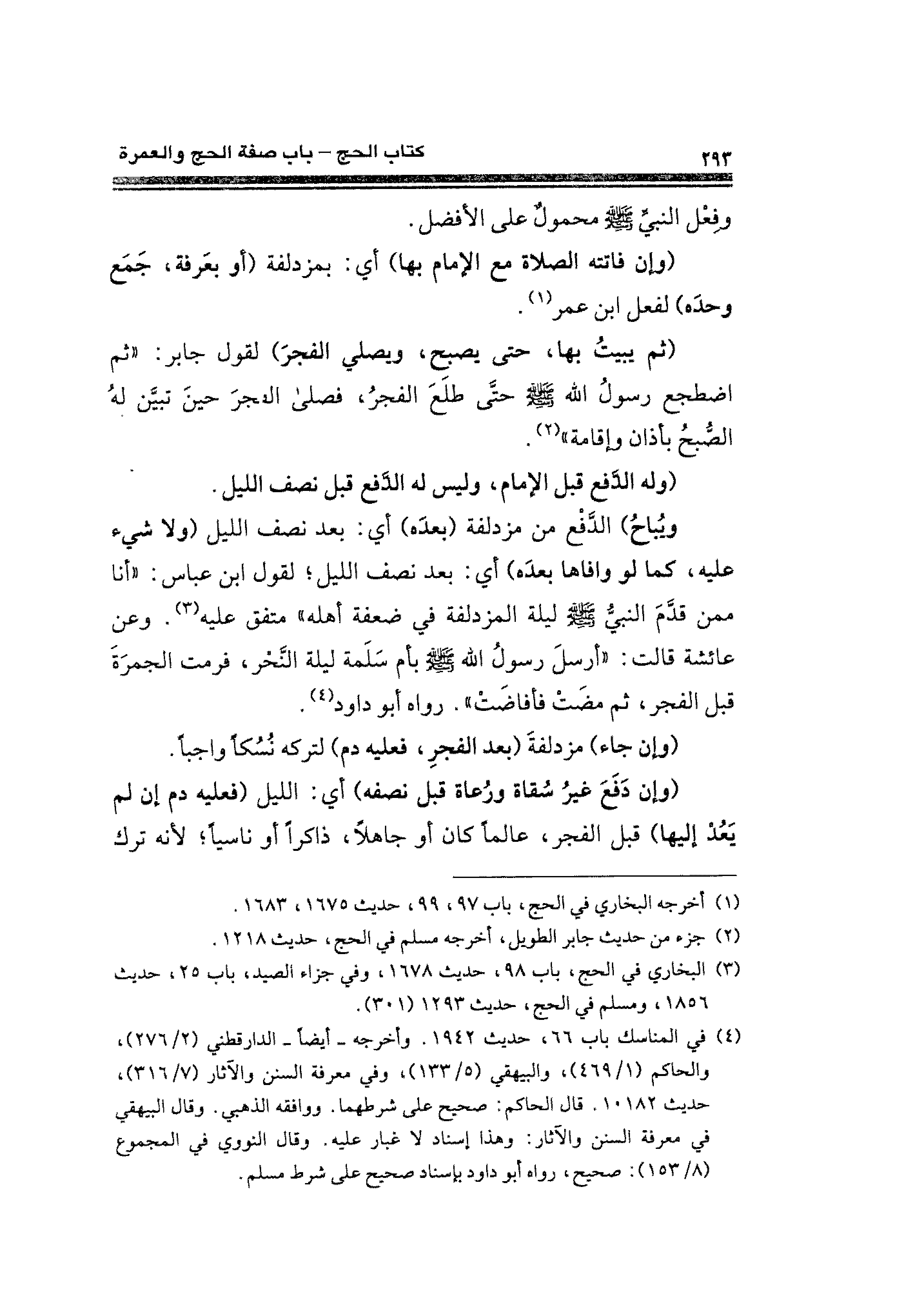 (¬٤) في المناسك باب ٦٦، حديث ١٩٤٢. وأخرجه -أيضًا- الدارقطني (٢/ ٢٧٦)، والحكم (١/ ٤٦٩)، والبيهقي (٥/ ١٣٣) وفي معرفة السنن والآثار (٧/ ٣١٦)، حديث ١٠١٨٢. قال الحاكم: صحيح على شرطهما. ووافقه الذهبي. وقال البيهقي في معرفة السنن والآثار: وهذا إسناد لا غبار عليه. وقال النووي في المجموع (٨/ ١٥٣): صحيح، رواه أبو داود بإسناد صحيح على شرط مسلم.