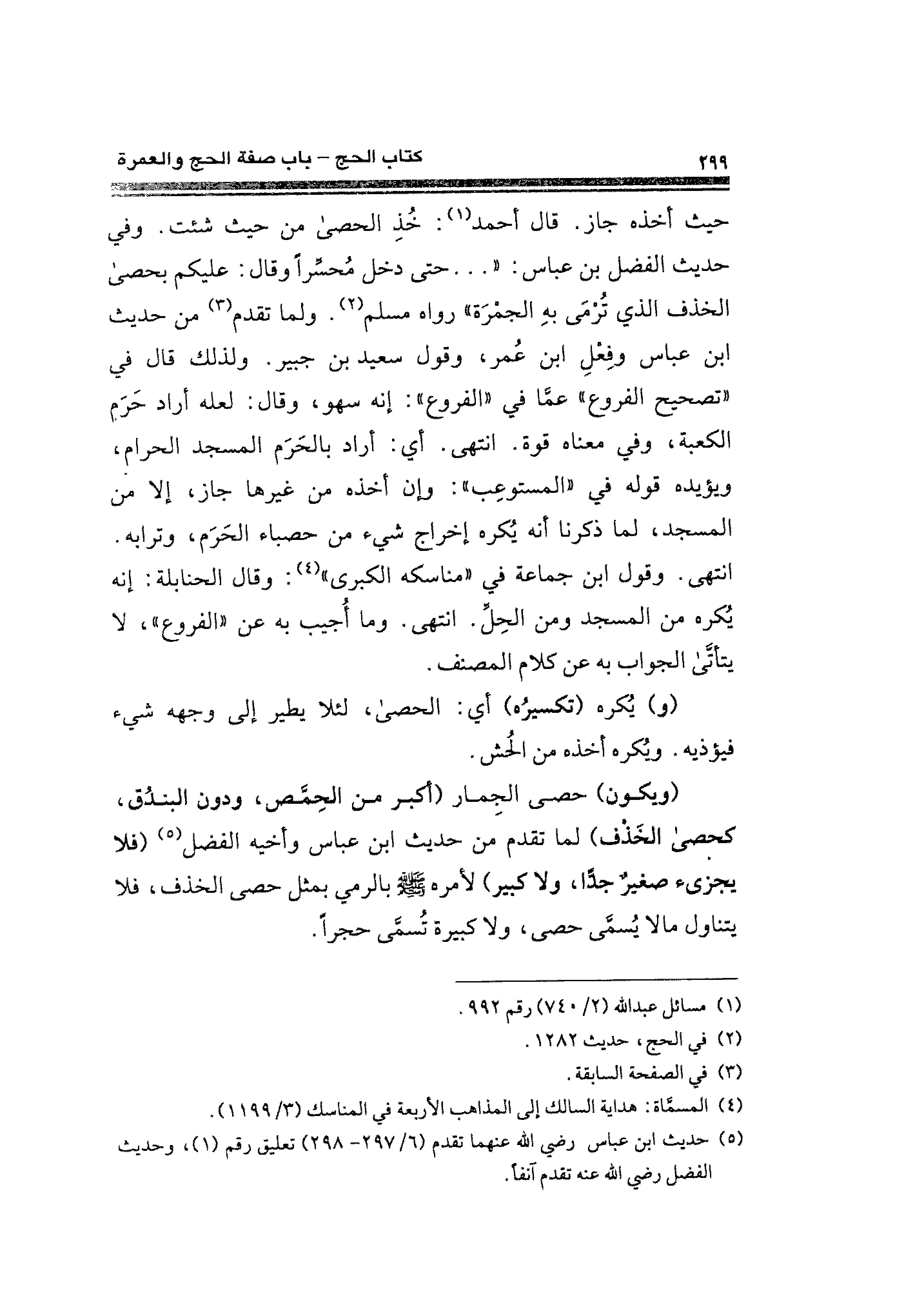 حيث أخذه جاز. قال أحمد (¬١): خُذِ الحصى من حيث شئت. وفي حديث الفضل بن عباس: " ... حتى دخل محسِّرًا وقال: عليكم بحصى الخذف الذي تُرمَى بهِ الجمرَة" رواه مسلم (¬٢). ولما تقدم (¬٣) من حديث ابن عباس وفِعْلِ ابن عُمر، وقول سعيد بن جبير. ولذلك قال في "تصحيح الفروع" عما في "الفروع": إنه سهو، وقال: لعله أراد حَرَم الكعبة، وفي معناه قوة. انتهى. أي: أراد بالحَرَم المسجد الحرام، ويؤيده قوله في"المستوعِب": وإن أخذه من غيرها جاز، إلا من المسجد، لما ذكرنا أنه يكره إخراج شيء من حصباء الحَرَم، وترابه. انتهى. وقول ابن جماعة في "مناسكه الكبرى" (¬٤): وقال الحنابلة: إنه يُكره من المسجد ومن الحِلِّ. انتهى. وما أُجيب به عن "الفروع"، لا يتأتَّى الجواب به عن كلام المصنف.