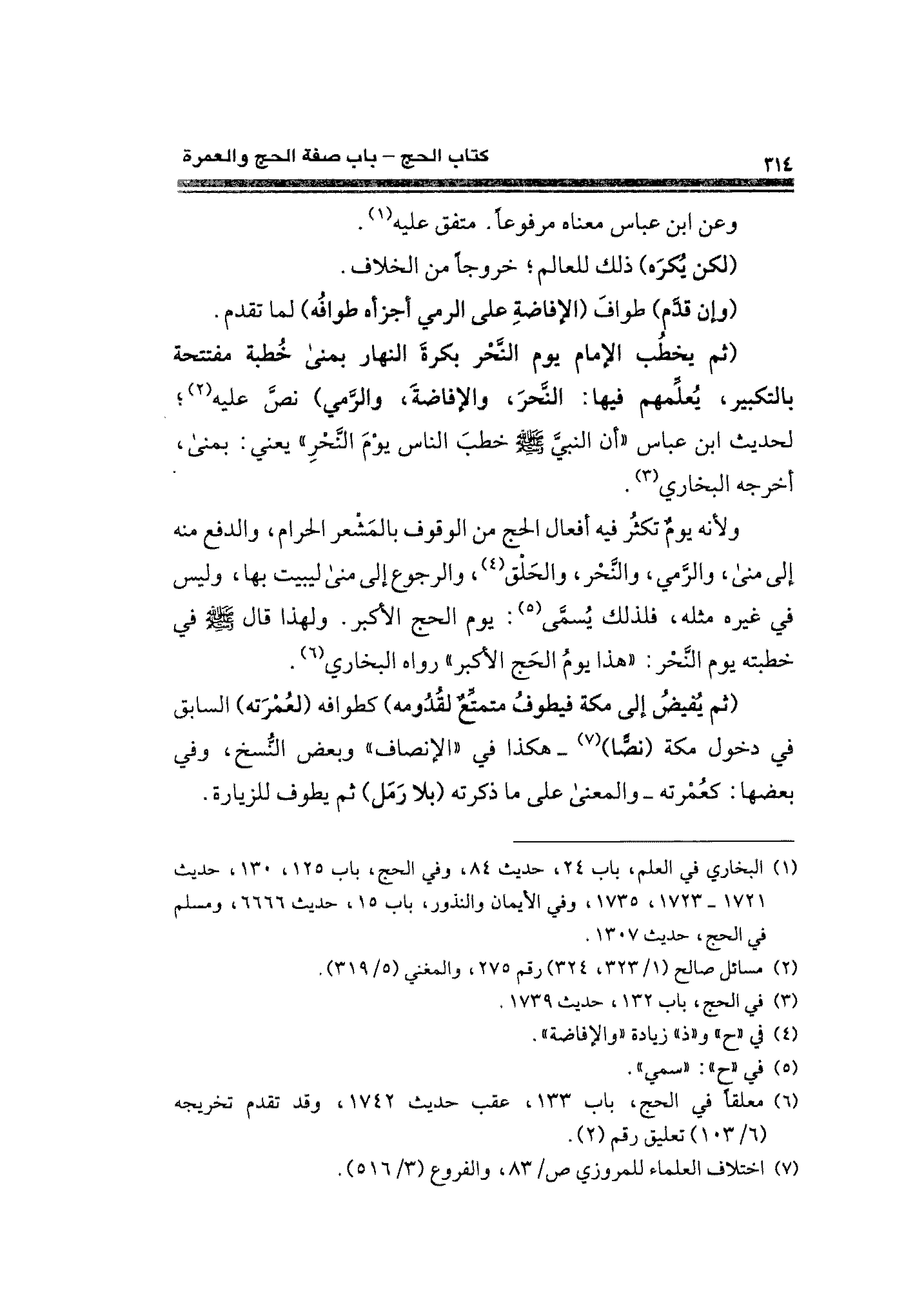 (¬١) البخاري في العلم، باب ٢٤، حديث ٨٤، وفي الحج، باب ١٢٥، ١٣٠، حديث ١٧٢١ - ١٧٢٣، ١٧٣٥، وفي الأيمان والنذور، باب ١٥، حديث ٦٦٦٦، ومسلم في الحج، حديث ١٣٠٧.