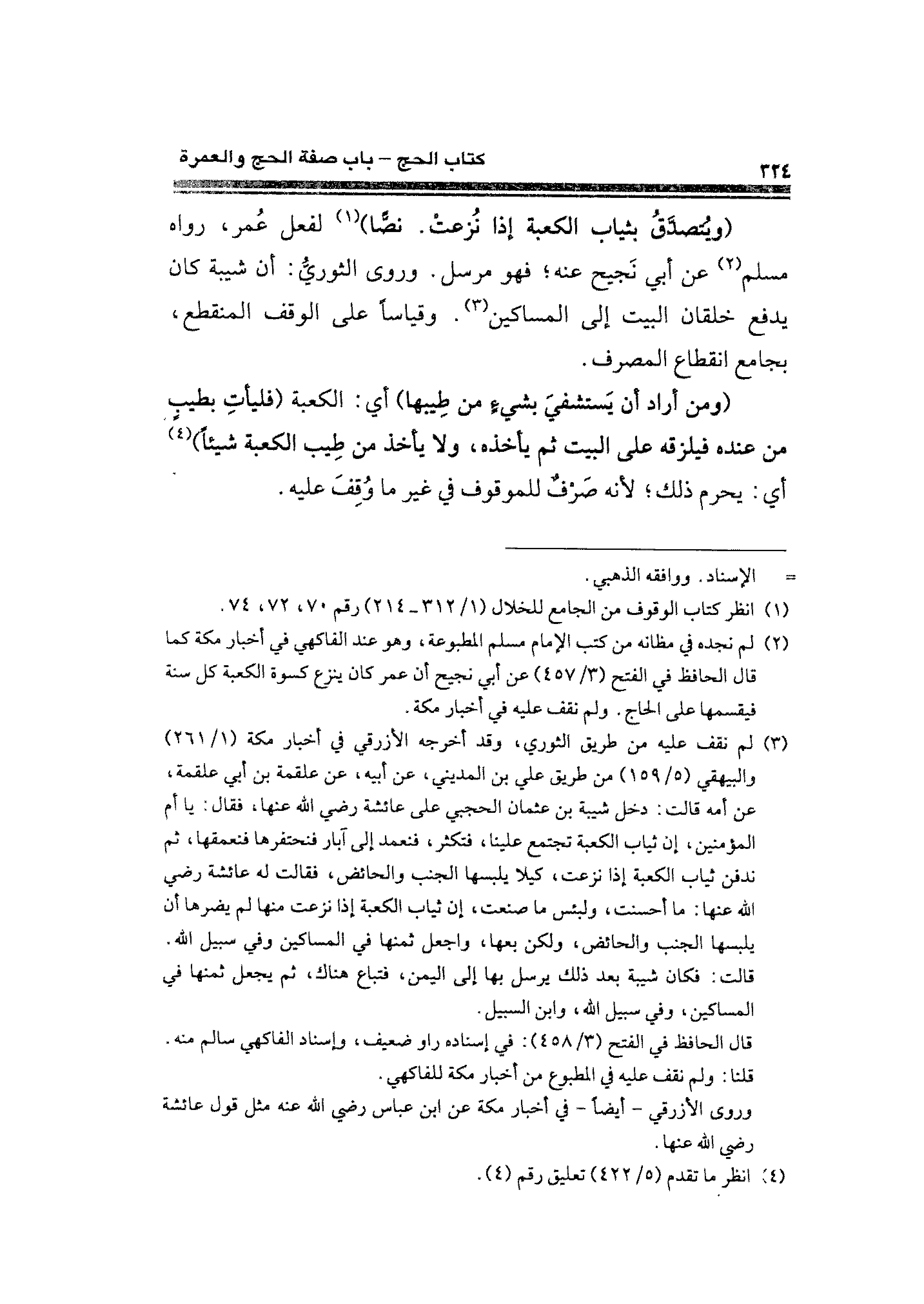 (¬٢) لم نجده في مظانه من كتب الإمام مسلم المطبوعة، وهو عند الفاكهي في أخبار مكة كما قال الحافظ الفتح (٣/ ٤٥٧) عن أبي نجيح أن عمر كان ينزع كسوة الكعبة كل سنة فيقسمها على الحاج. ولم نقف عليه في أخبار مكة.