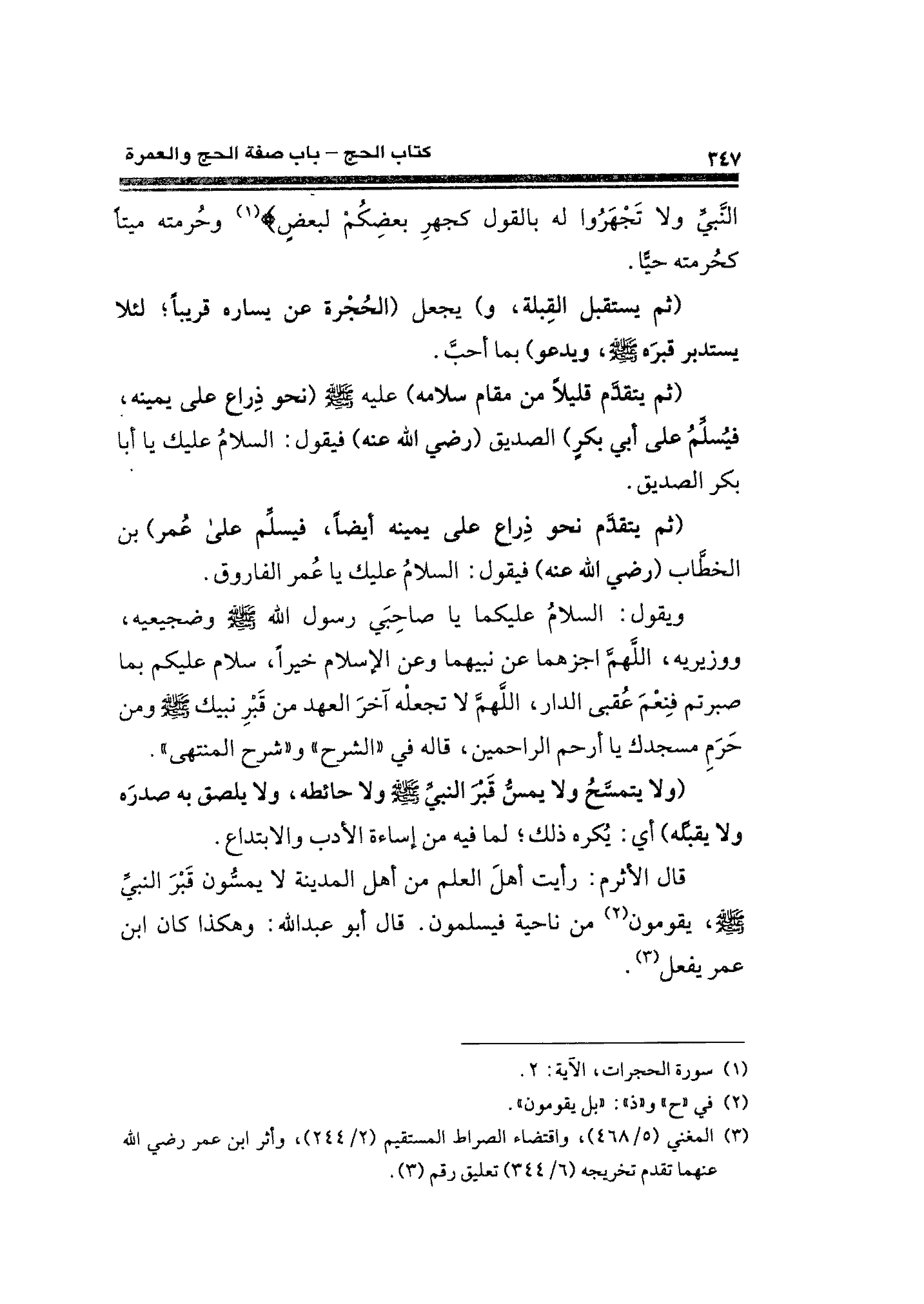 (¬٣) المغني (٥/ ٤٦٨)، واقتضاء الصراط المستقيم (٢/ ٢٤٤)، وأثر ابن عمر رضي الله عنهما تقدم تخريجه (٦/ ٣٤٤) تعليق رقم (٣).