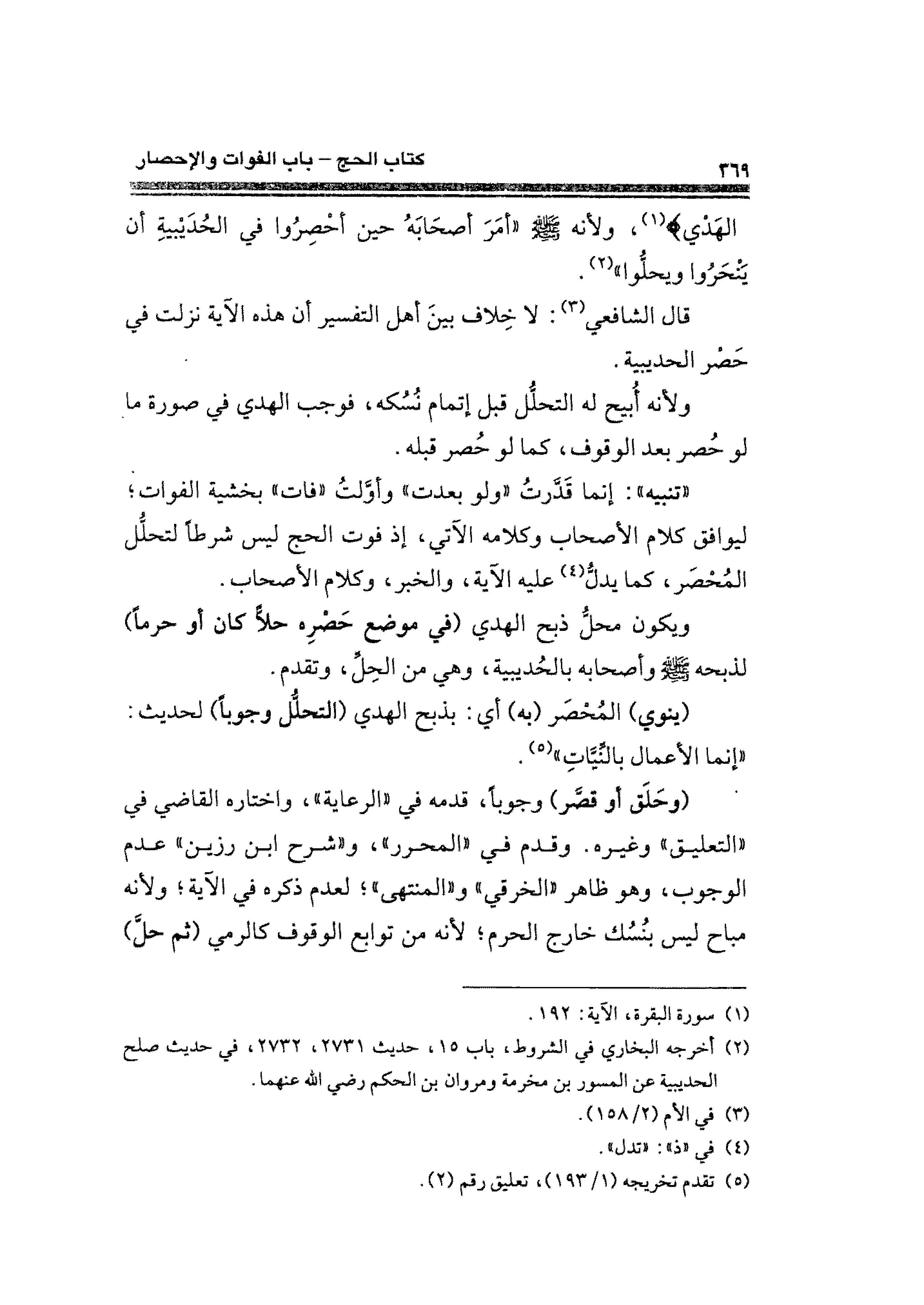 قال الشافعي (¬٣): لا خِلاف بينَ أهل التفسير أن هذه الآية نزلت في حَصْر الحديبية.