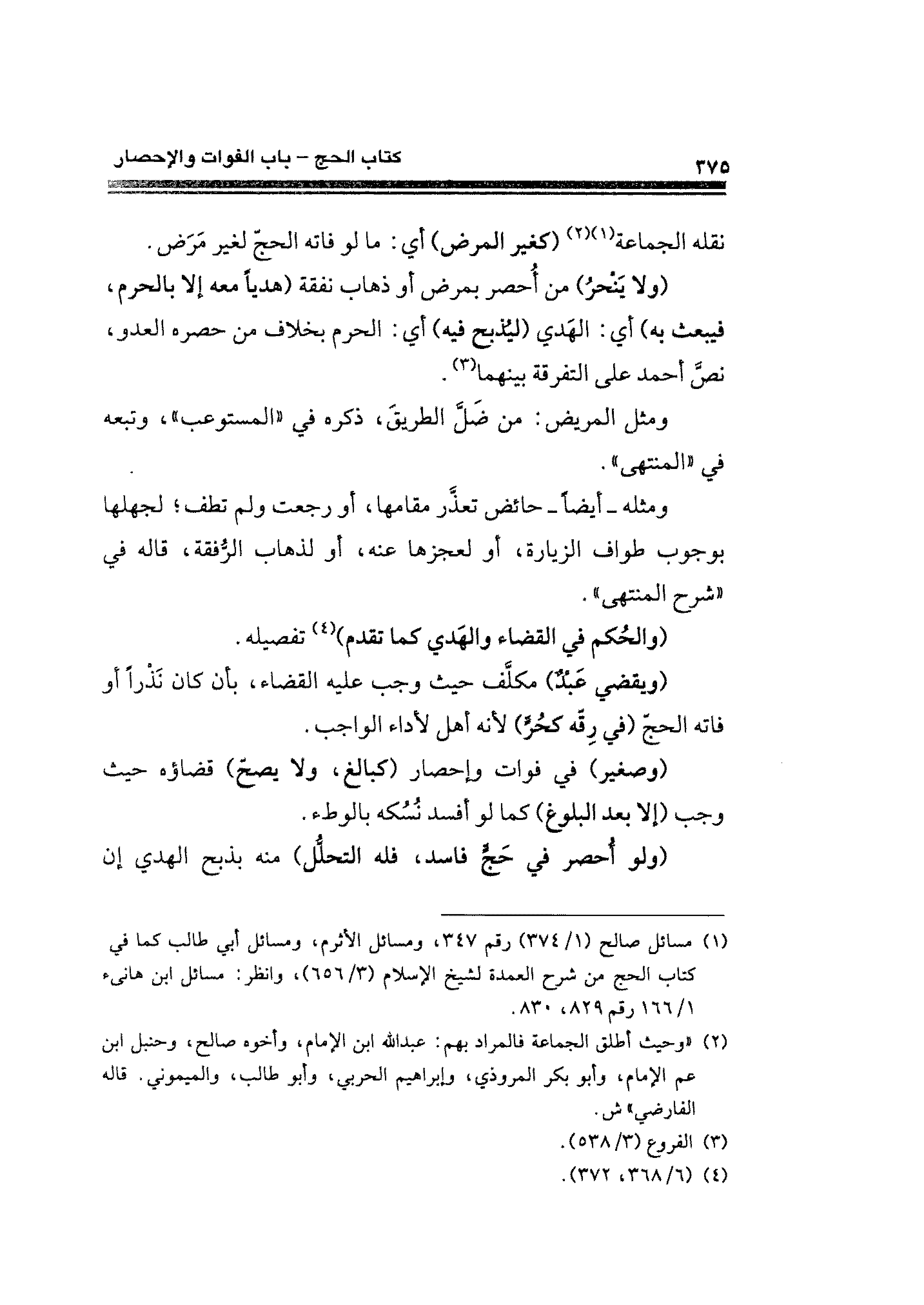 نقله الجماعة (¬١) (¬٢) (كغير المرض) أي: ما لو فاته الحجَّ لغير مَرَض.