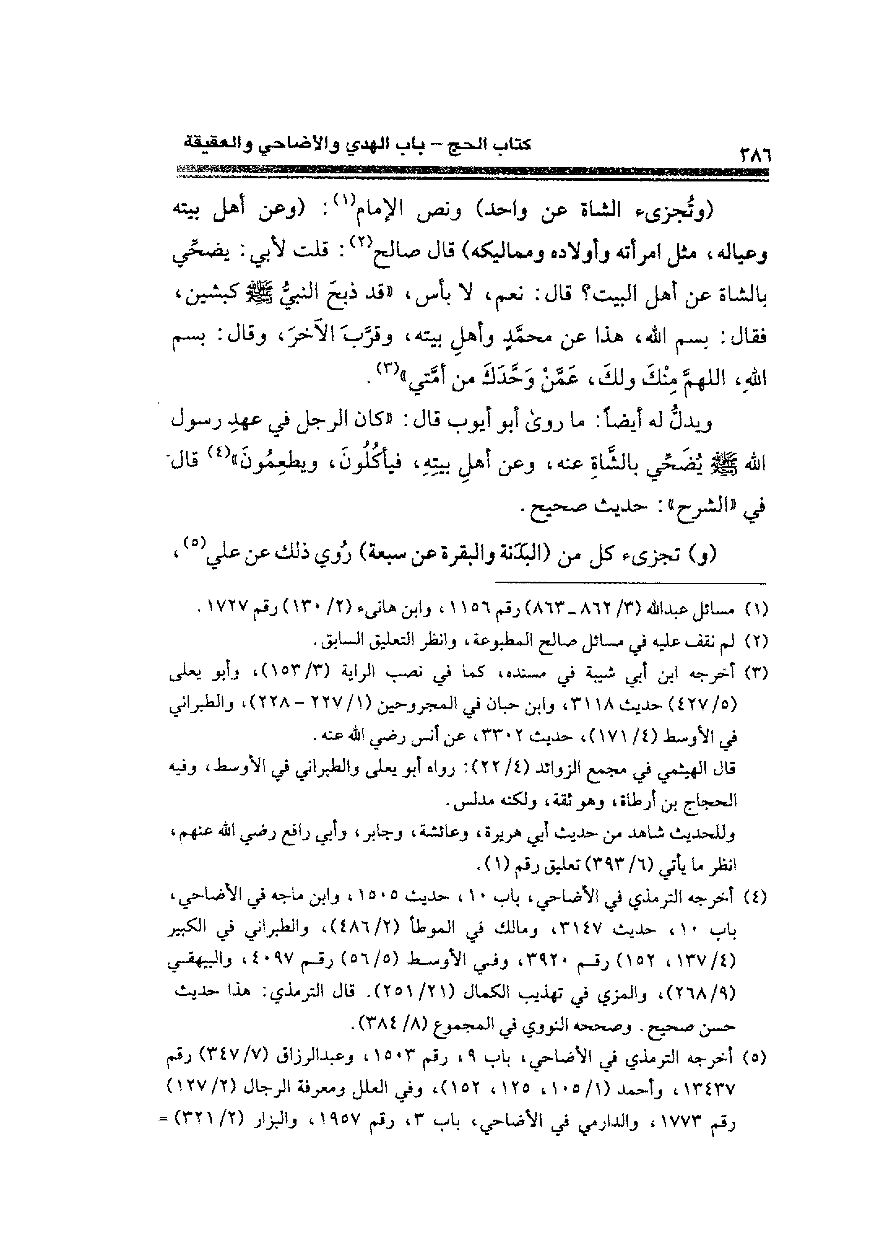 (¬٤) أخرجه الترمذي في الأضاحي، باب ١٠، حديث ١٥٠٥، وابن ماجه في الأضاحي، باب ١٠، حديث ٣١٤٧، ومالك في الموطأ (٢/ ٤٨٦)، والطبراني في الكبير (٤/ ١٣٧، ١٥٢) رقم ٣٩٢٠، وفي الأوسط (٥/ ٥٦) رقم ٤٠٩٧، والبيهقي (٩/ ٢٦٨)، والمزي في تهذيب الكمال (٢١/ ٢٥١). قال الترمذي: هذا حديث حسن صحيح. وصححه النووي في المجموع (٨/ ٣٨٤).