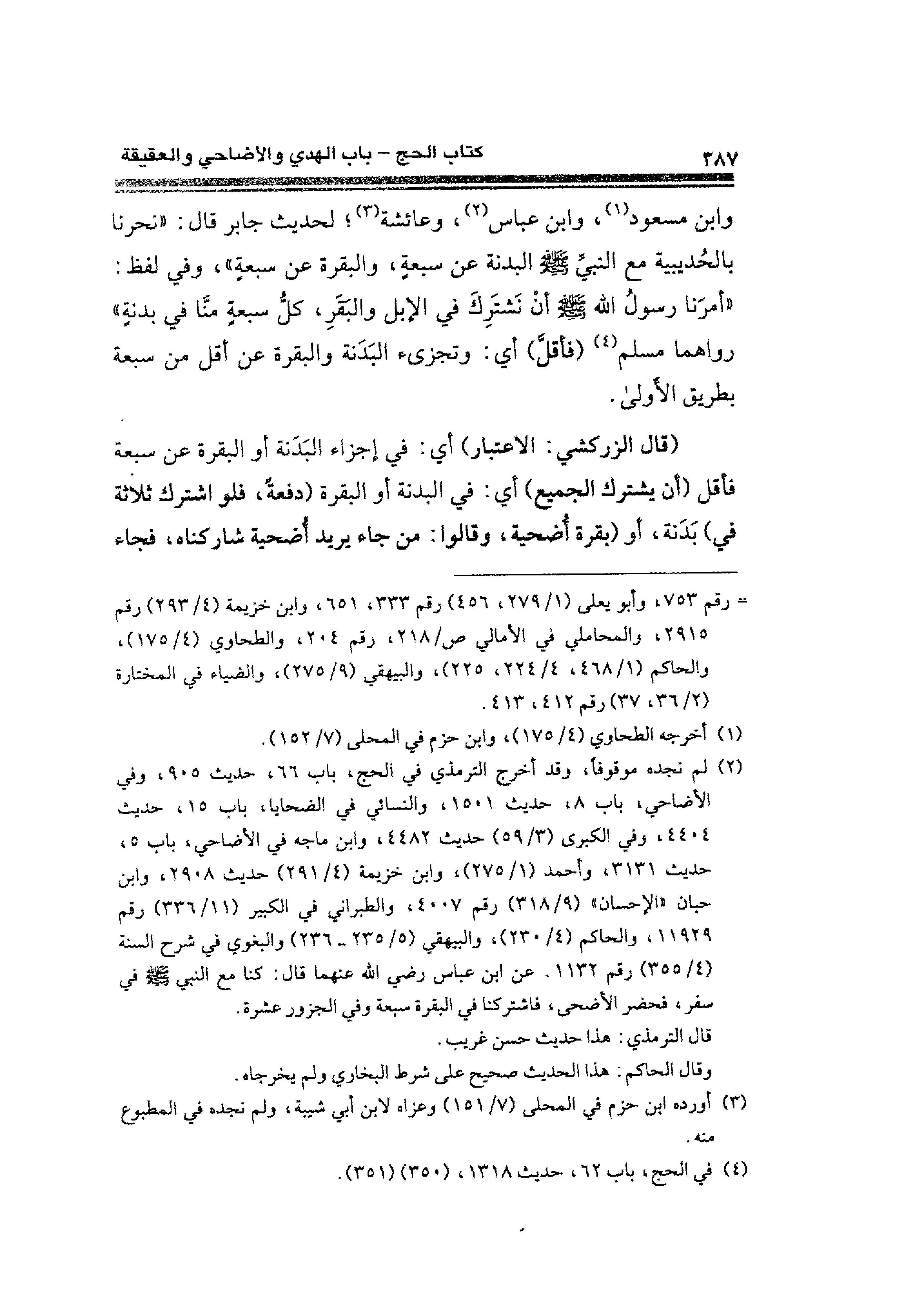 (¬٤) في الحج، باب ٦٢، حديث ١٣١٨، (٣٥٠) (٣٥١).