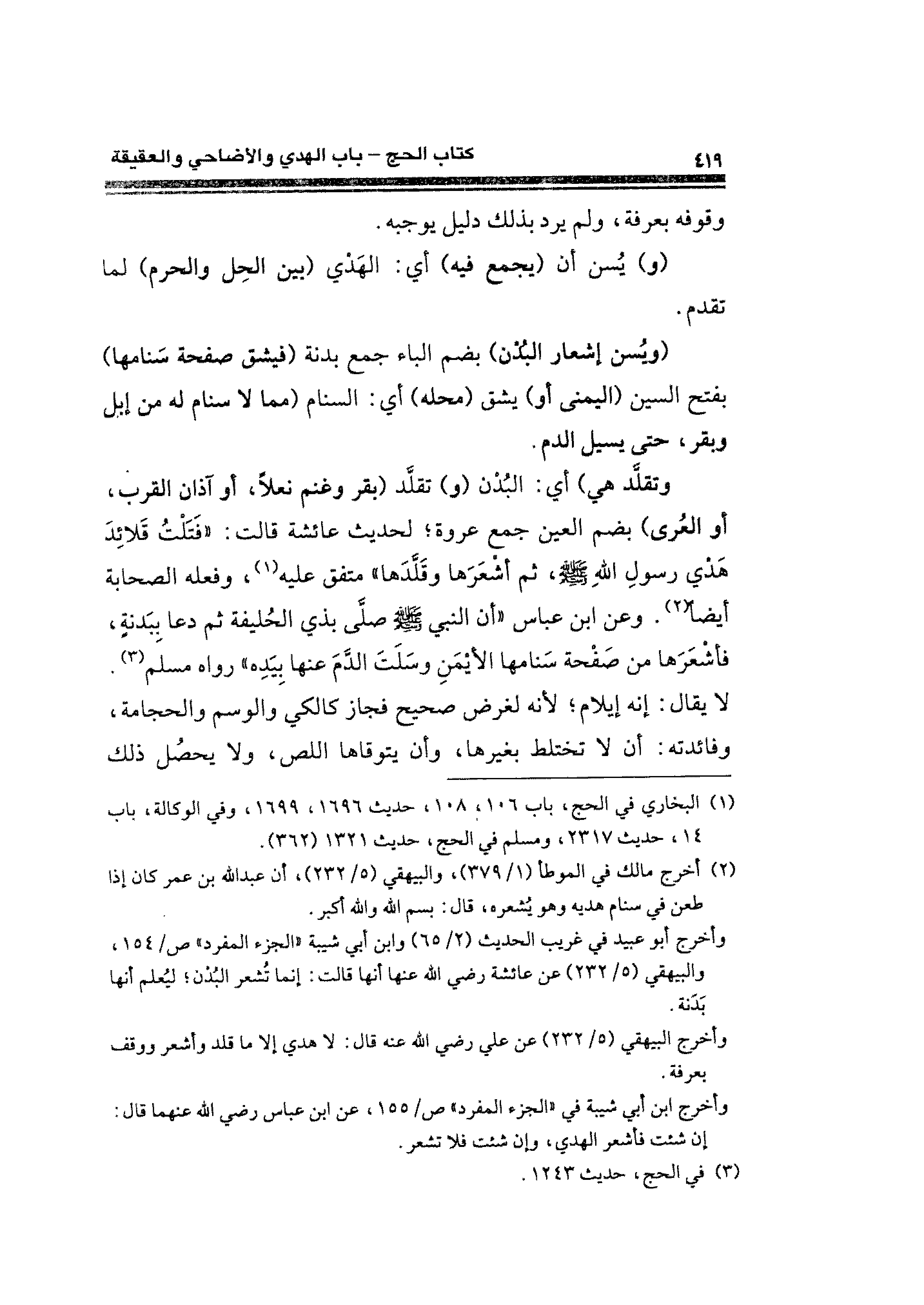 وأخرج البيهقي (٥/ ٢٣٣) عن علي رضي الله عنه قال: لا هدي إلا ما قلد وأشعر ووقف بعرفة.