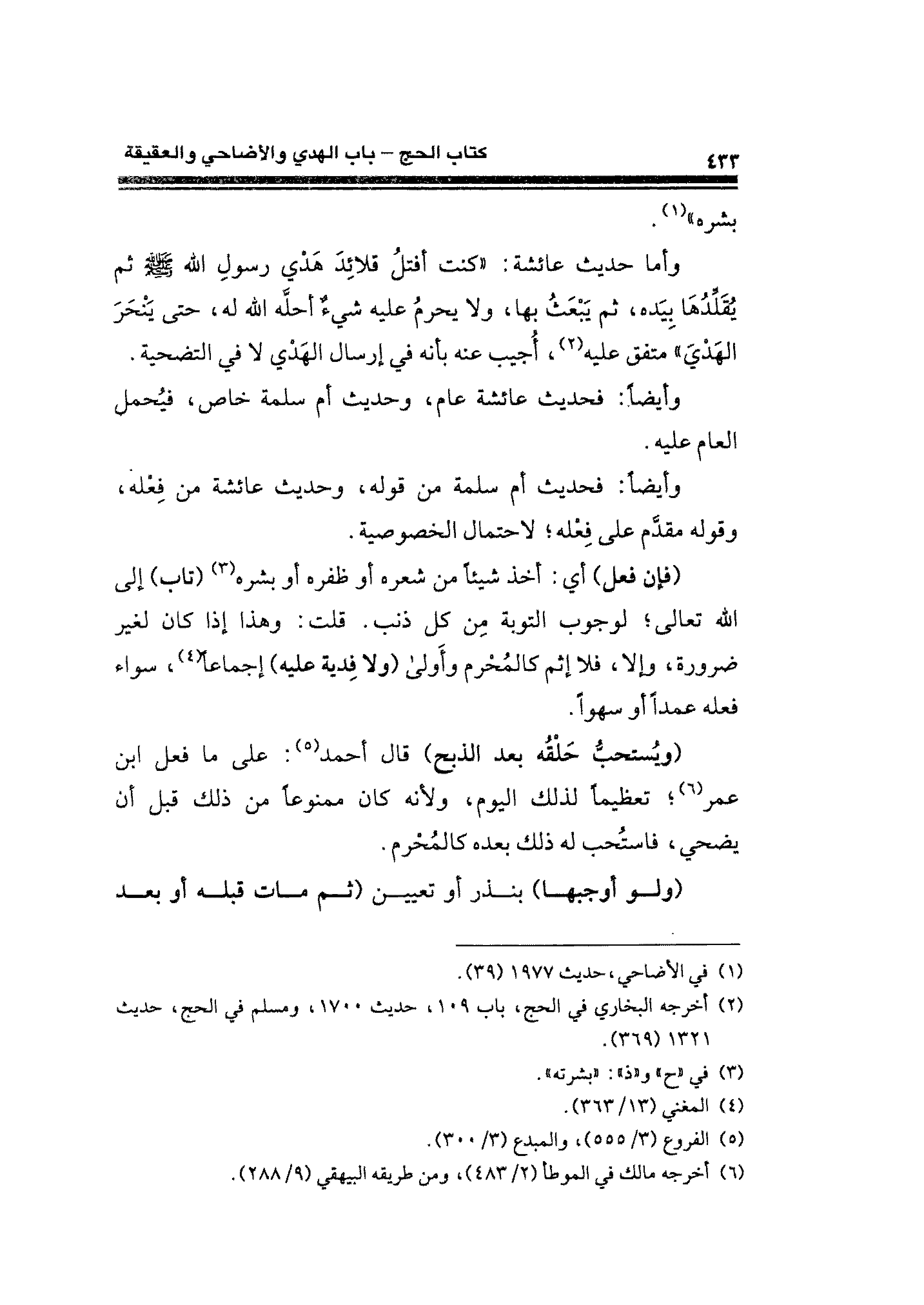 وأما حديث عائشة: "كنت أفتلُ قلائِدَ هَدْي رسول الله - صلى الله عليه وسلم - ثم يُقَلَّدُهَا بِيَده، ثم يَبْعَث بها، ولا يحرمُ عليه شيءٌ: أحلَّه الله له، حتى يَنْحَرَ الهَدْيَ" متفق عليه (¬٢)، أُجيب عنه بأنه في إرسال الهَدْي لا في التضحية.