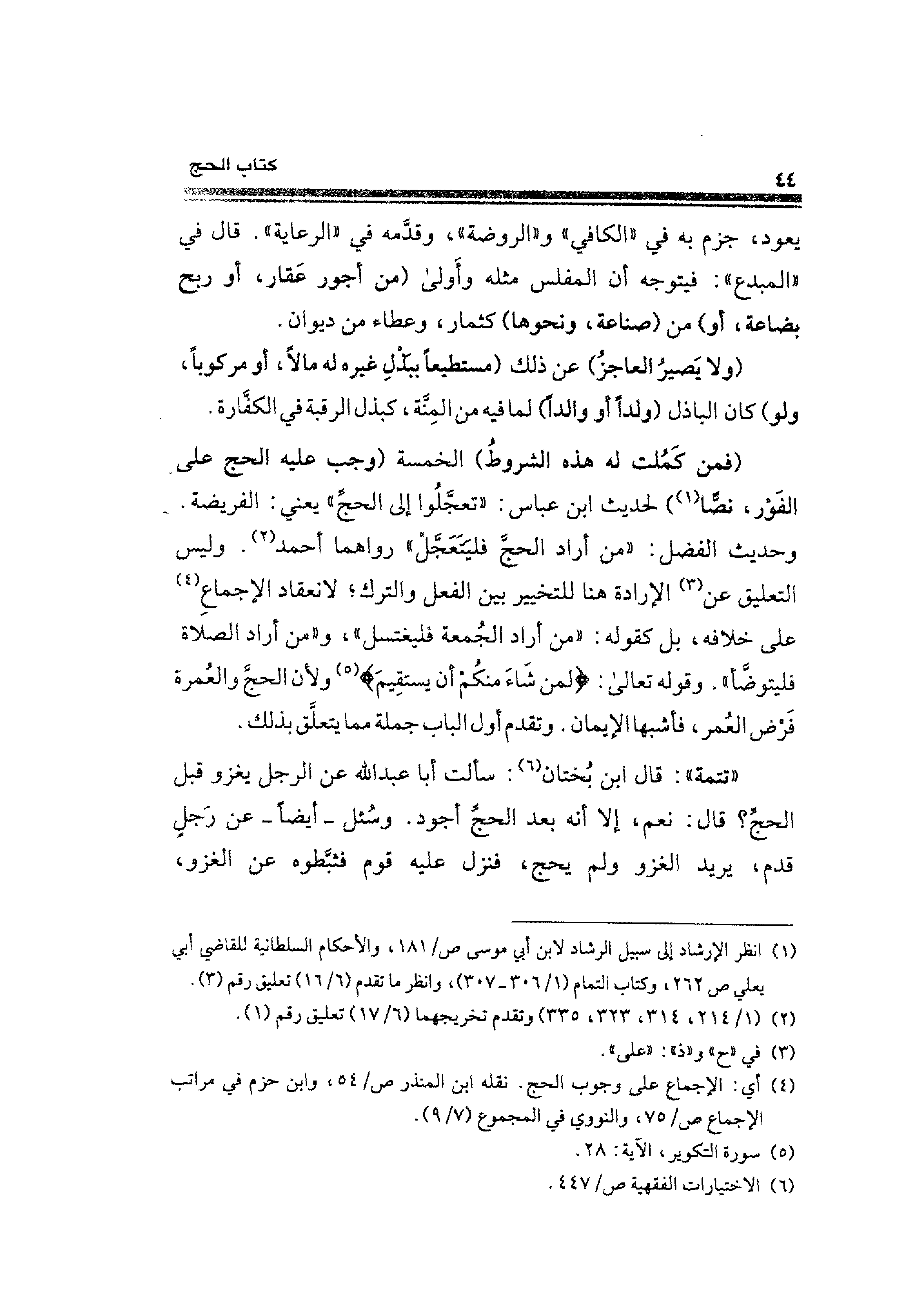 (¬١) انظر الإرشاد إلى سبيل الرشاد لابن أبي موسى ص / ١٨١، والأحكام السلطانية للقاضي أبي يعلى ص ٢٦٢، وكتاب التمام (١/ ٣٠٦ - ٣٠٧)، وانظر ما تقدم (٦/ ١٦) تعليق رقم (٣).