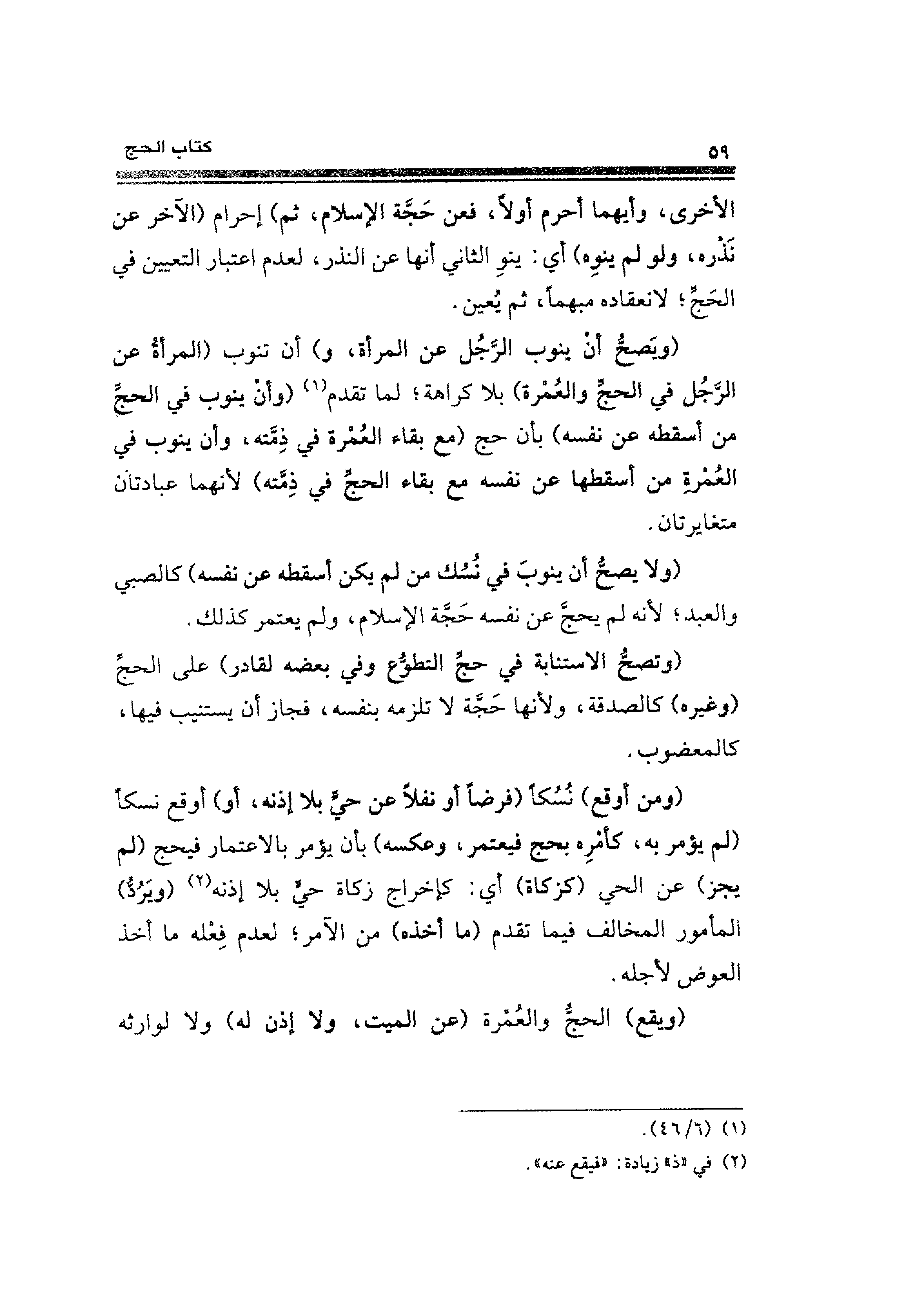 (ومن أوقع) نسُكًا (فرضًا أو نفلًا عن حيٍّ بلا إذنه، أو) أوقع نسكًا (لم يؤمر به، كأمْرِه بحج فيعتمر، وعكسه) بأن يؤمر بالاعتمار فيحج (لم يجز) عن الحي (كزكاة) أي: كإخراج زكاة حي بلا إذنه (¬٢) (ويَردُّ) المأمور المخالف فيما تقدم (ما أخذه) من الآمر؛ لعدم فِعله ما أخذ العوض لأجله.