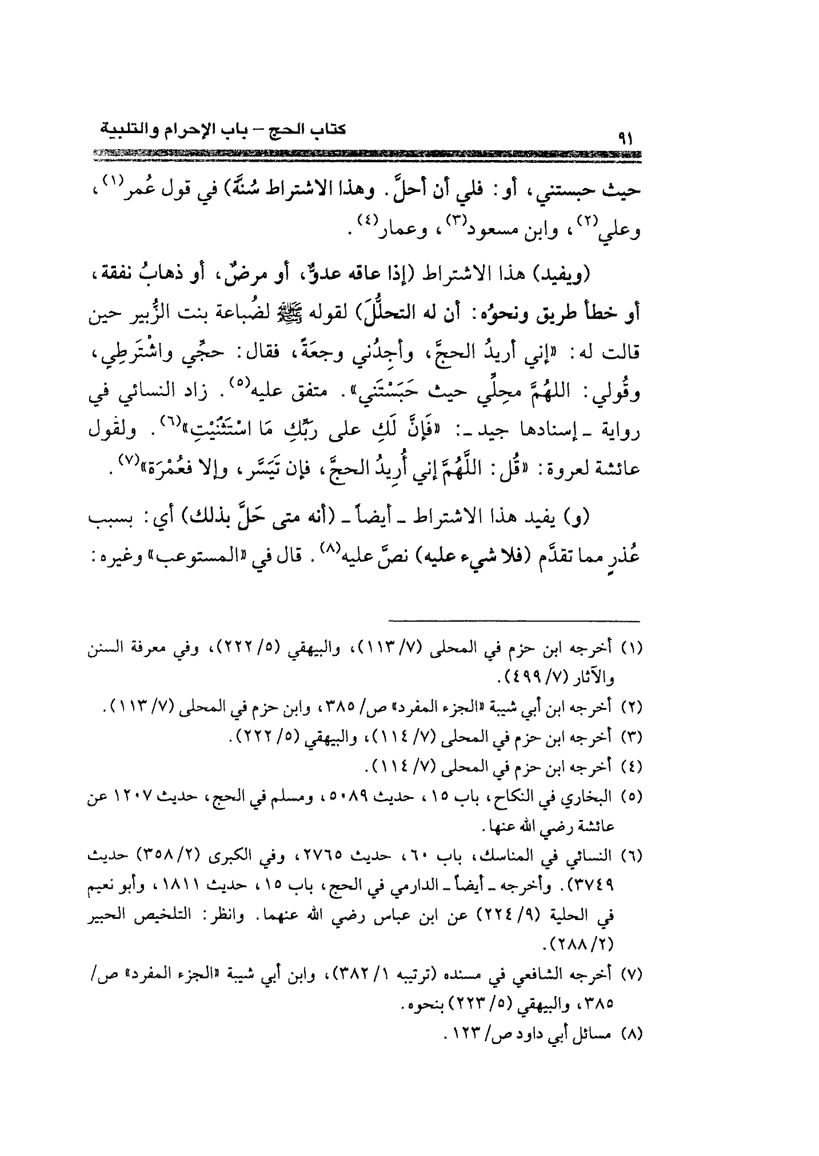 حيث حبستني، أو: فلي أن أحلَّ. وهذا الاشتراط سُنَّةً) في قول عُمر (¬١)، وعلي (¬٢)، وابن مسعود (¬٣)، وعمار (¬٤).