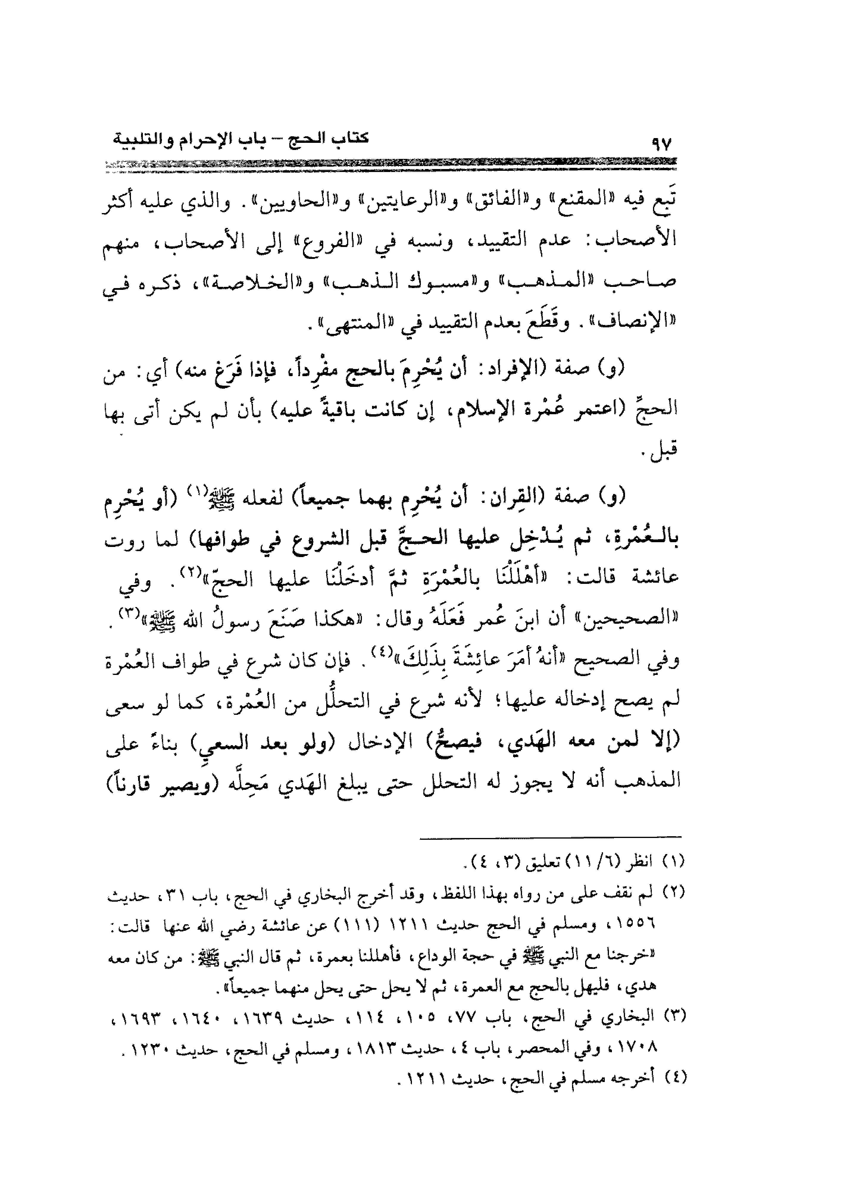 (¬٣) البخاري في الحج، باب ٧٧، ١٠٥، ١١٤، حديث ١٦٣٩، ١٦٤٠، ١٦٩٣، ١٧٠٨، وفي المحصر، باب ٤، حديث ١٨١٣، ومسلم في الحج، حديث ١٢٣٠.