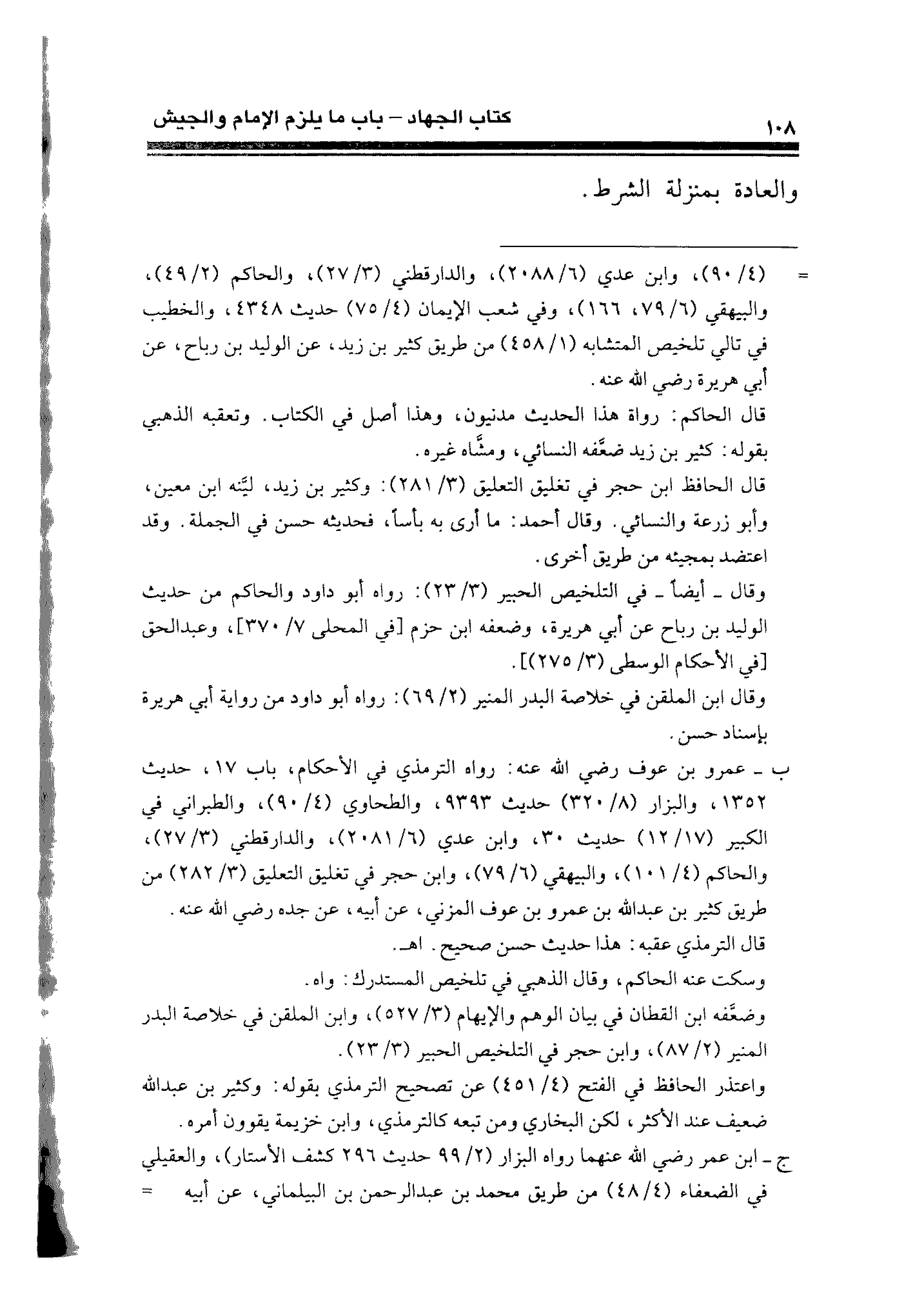 = (٤/ ٩٠)، وابن عدي (٦/ ٢٠٨٨)، والدارقطني (٣/ ٢٧)، والحاكم (٢/ ٤٩)، والبيهقي (٦/ ٧٩، ١٦٦)، وفي شعب الإيمان (٤/ ٧٥) حديث ٤٣٤٨، والخطيب في تالي تلخيص المتشابه (١/ ٤٥٨) من طريق كثير بن زيد، عن الوليد بن رباح، عن أبي هريرة رضي الله عنه.