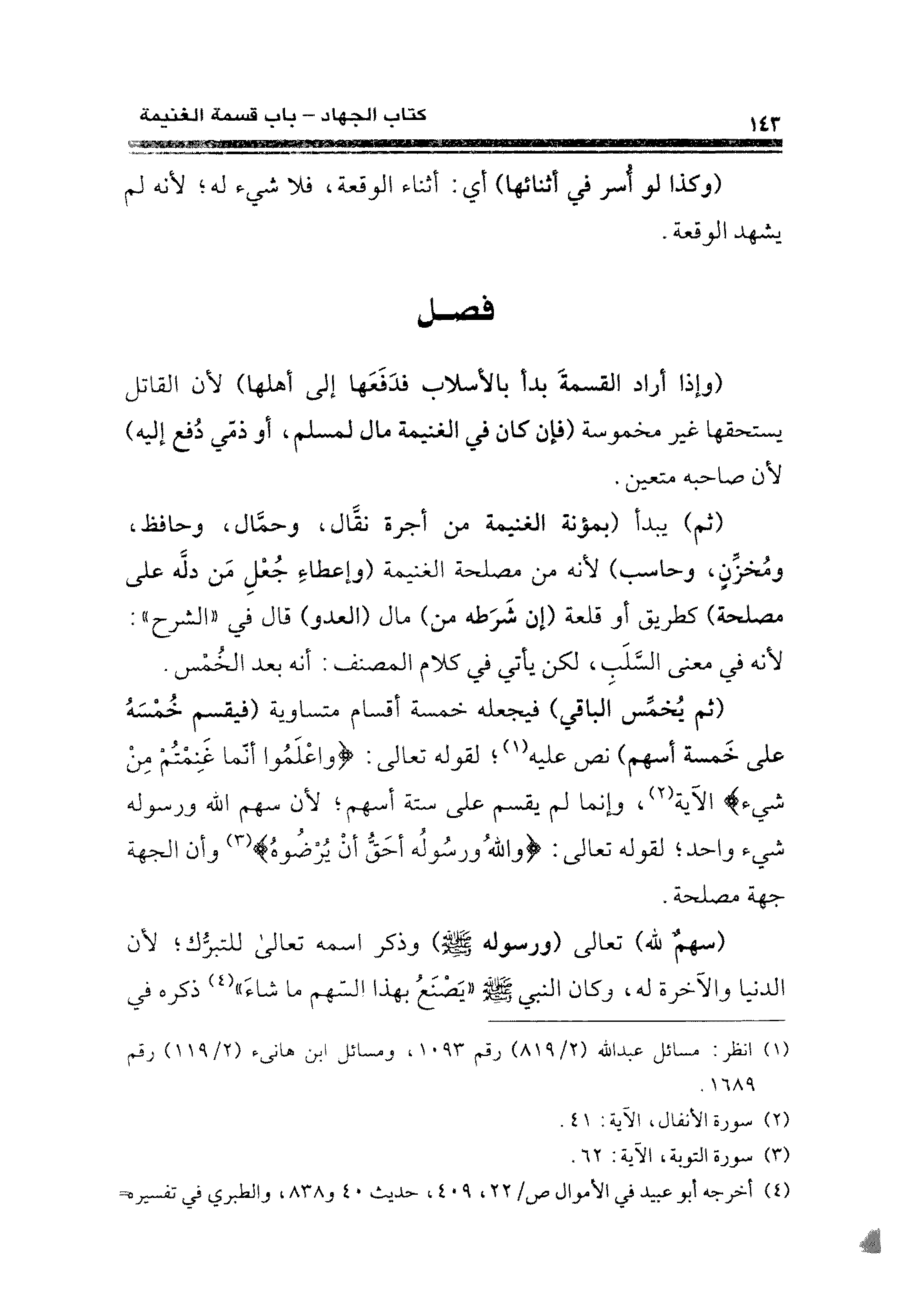 (¬٢) سورة الأنفال، الآية: ٤١.