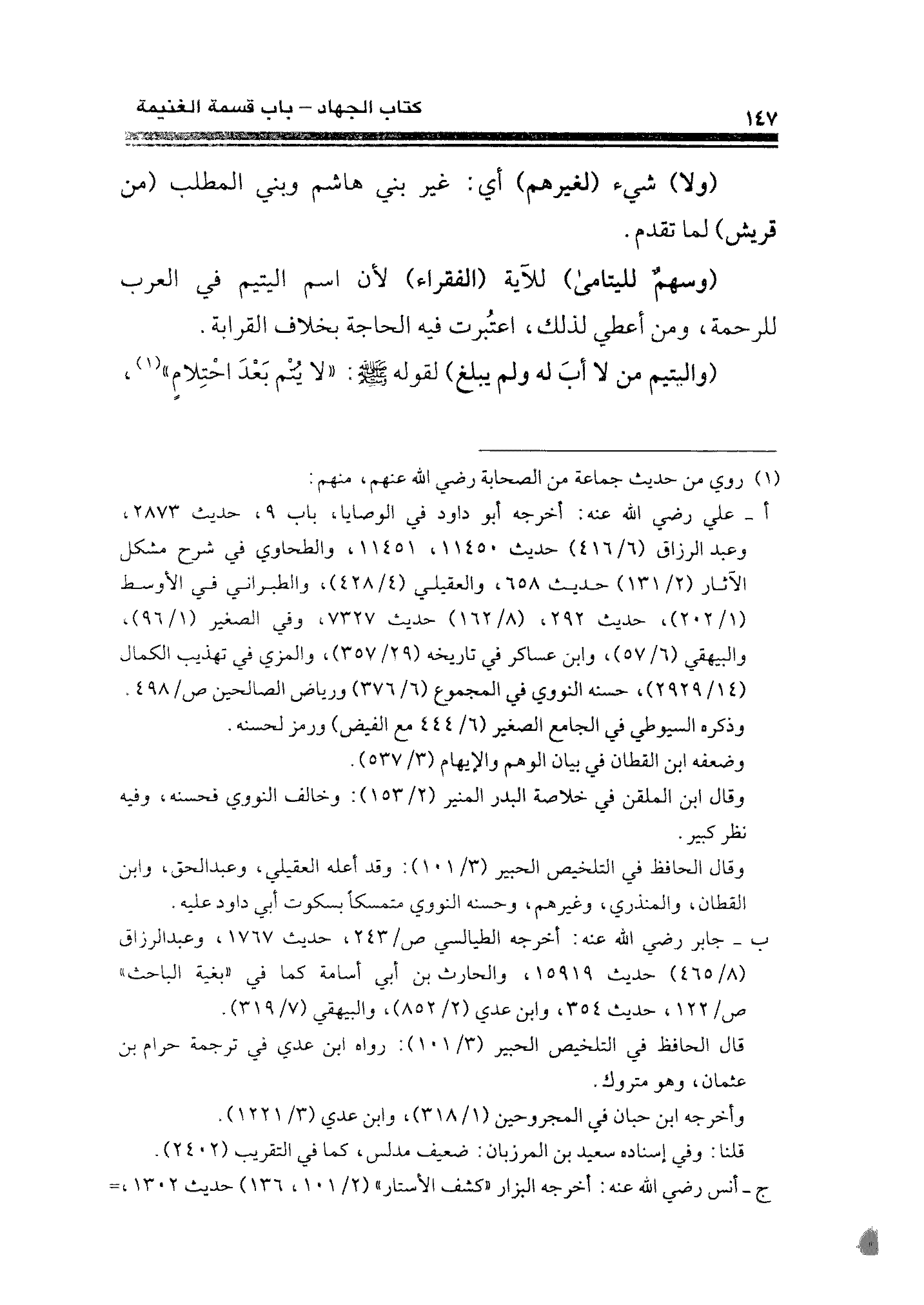 (وسهمٌ لليتامى) للآية (الفقراء) لأن اسم اليتيم في العرب للرحمة، ومن أعطي لذلك، اعتُبرت فِه الحاجة بخلاف القرابة.