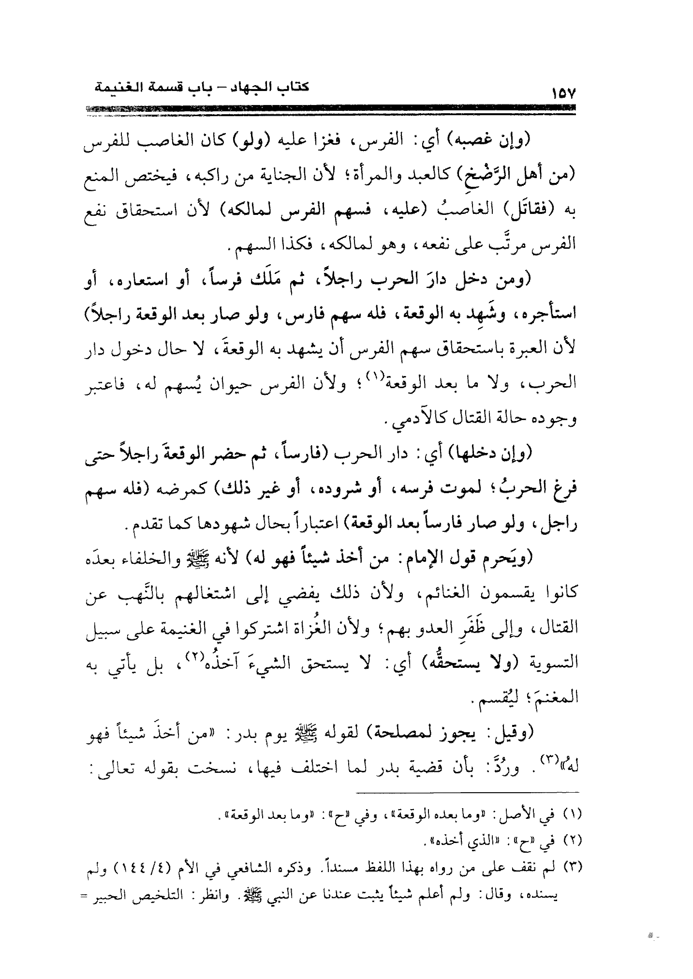 (وقيل: يجوز لمصلحة) لقوله - صلى الله عليه وسلم - يوم بدر: "من أخذَ شيئًا فهو لهُ" (¬٣). ورُدَّ: بأن قضية بدر لما اختلف فيها، نسخت بقوله تعالى: