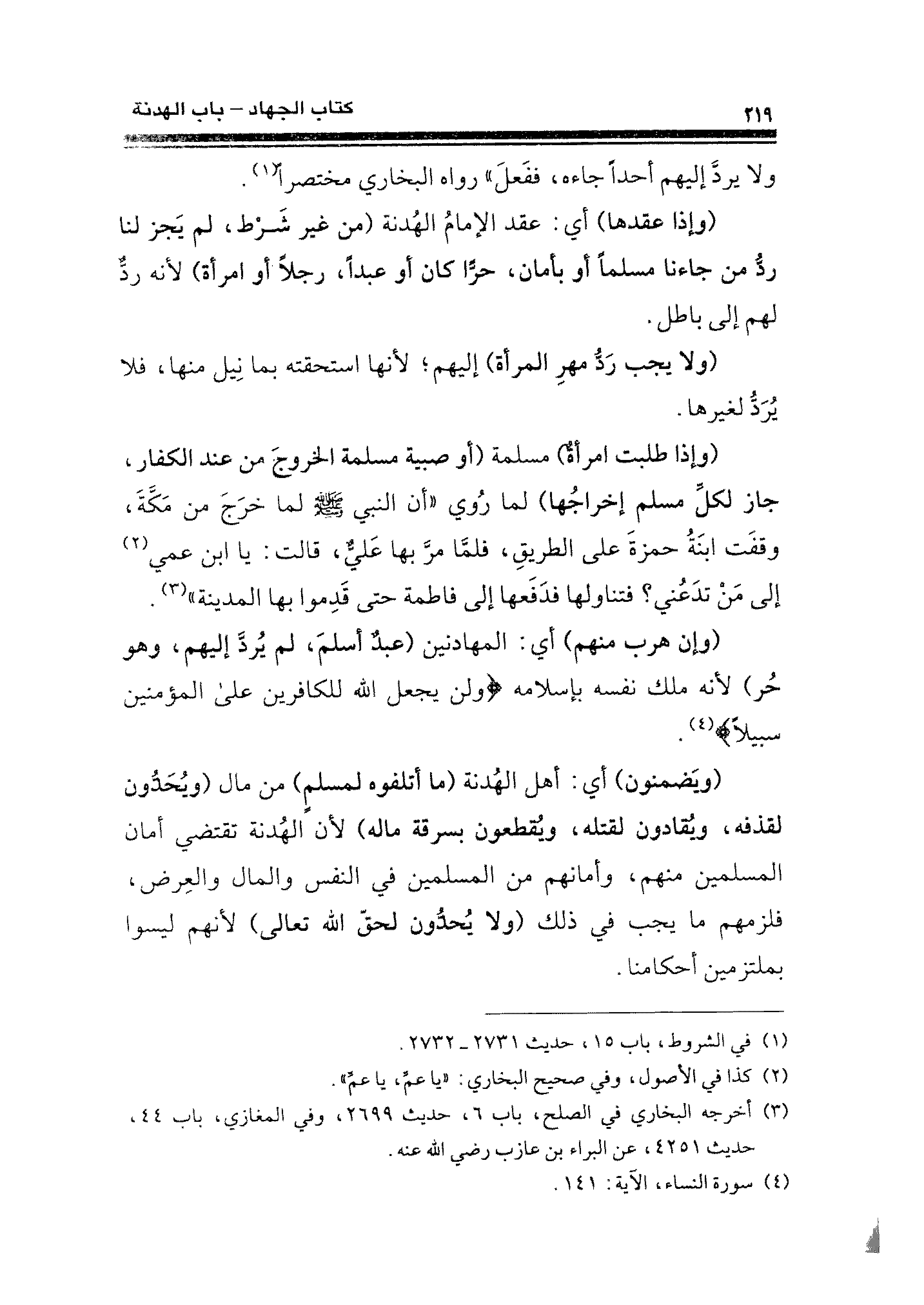 (¬٣) أخرجه البخاري في الصلح، باب ٦، حديث ٢٦٩٩، وفي المغازي، باب ٤٤، حديث ٤٢٥١، عن البراء بن عازب - صلى الله عليه وسلم -.