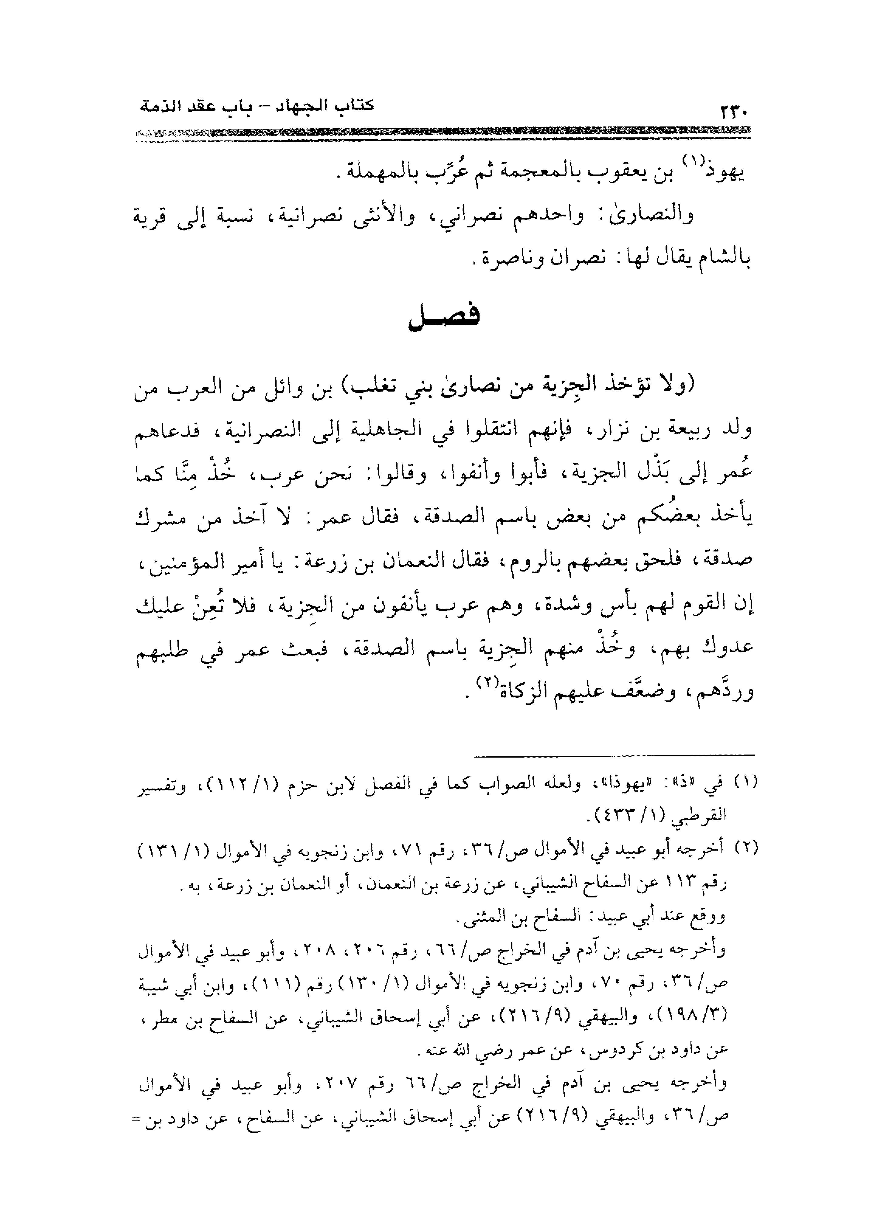 وأخرجه يحيى بن آدم في الخراج ص / ٦٦، رقم ٢٠٦، ٢٠٨، وأبو عبيد في الأموال ص / ٣٦، رقم ٧٠، وابن زنجويه في الأموال (١/ ١٣٠) رقم (١١١)، وابن أبي شيبة (٣/ ١٩٨)، والبيهقي (٩/ ٢١٦)، عن أبي إسحاق الشيباني، عن السفاح بن مطر، عن داود بن كردوس، عن عمر - رضي الله عنه -.
