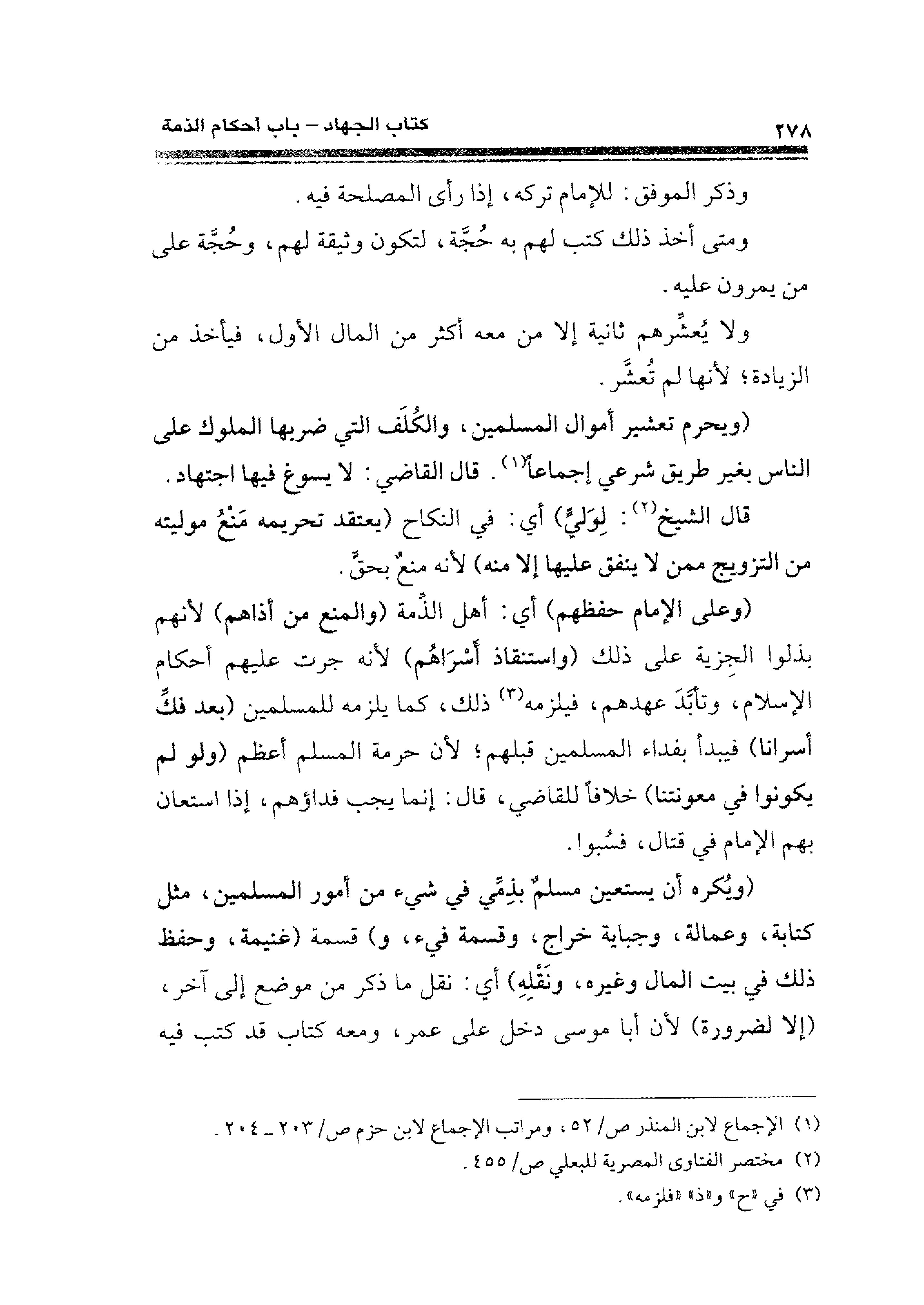 (¬١) الإجماع لابن المنذر ص / ٥٢، ومراتب الإجماع لابن حزم ص / ٢٠٣ - ٢٠٤.