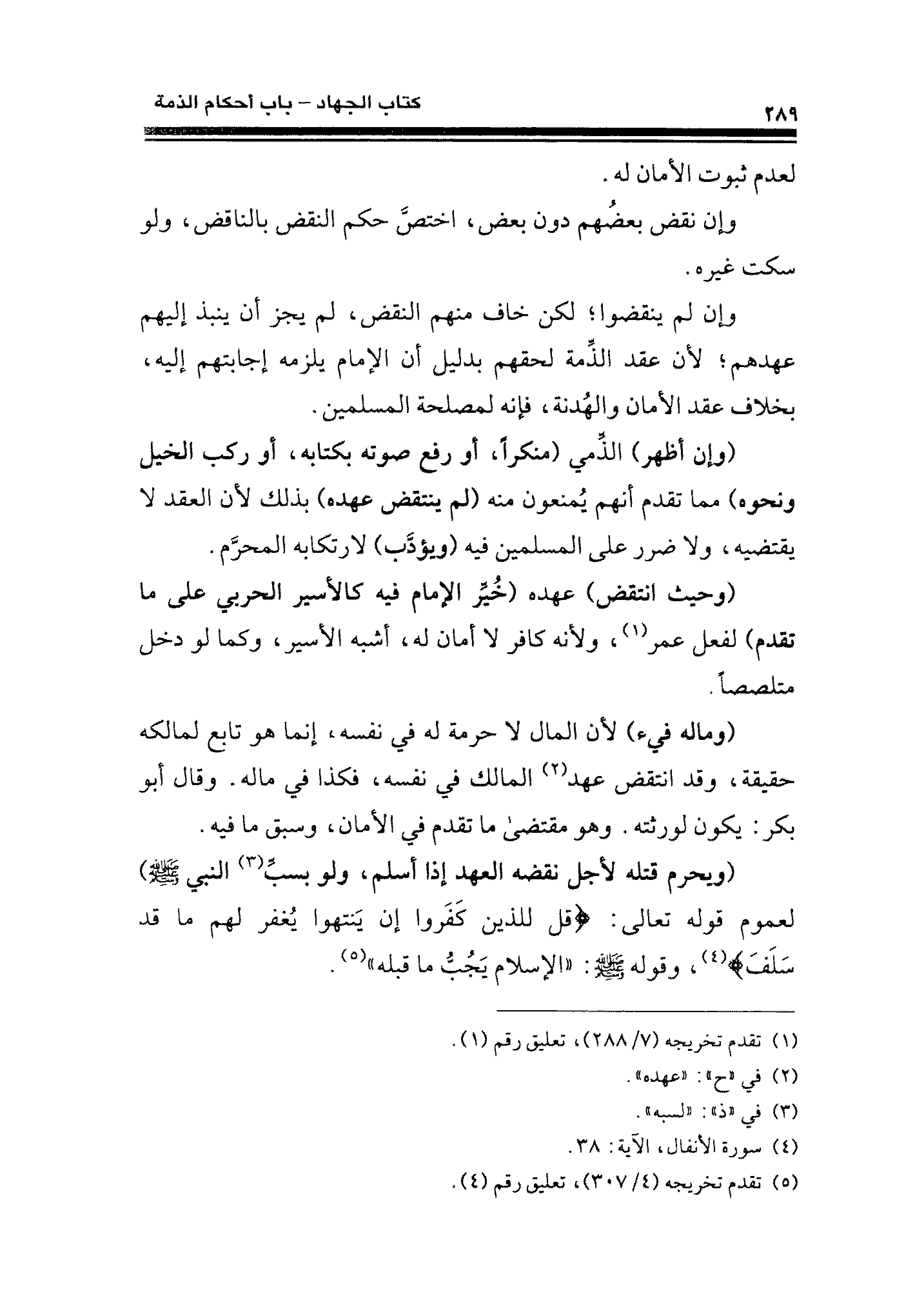 (ويحرم قتله لأجل نقضه العهد إذا أسلم، ولو بسبِّ (¬٣) النبي - صلى الله عليه وسلم -) لعموم قوله تعالى: {قُلْ لِلَّذِينَ كَفَرُوا إِنْ يَنْتَهُوا يُغْفَرْ لَهُمْ مَا قَدْ سَلَفَ} (¬٤)، وقوله - صلى الله عليه وسلم -: "الإسلام يَجُبُّ ما قبله" (¬٥).