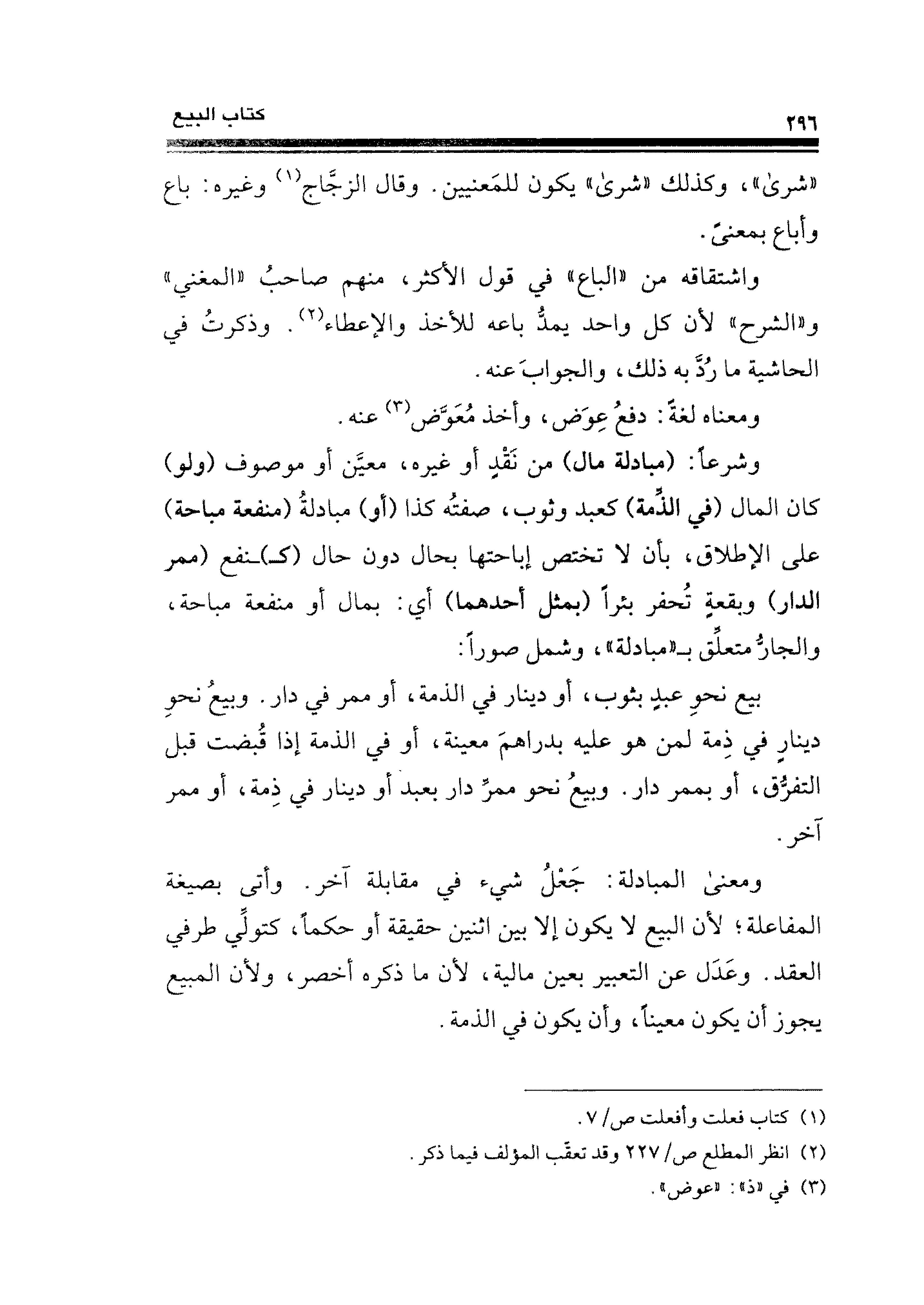 ومعناه لغةً: دفعُ عِوَض، وأخذ مُعَوَّض (¬٣) عنه.