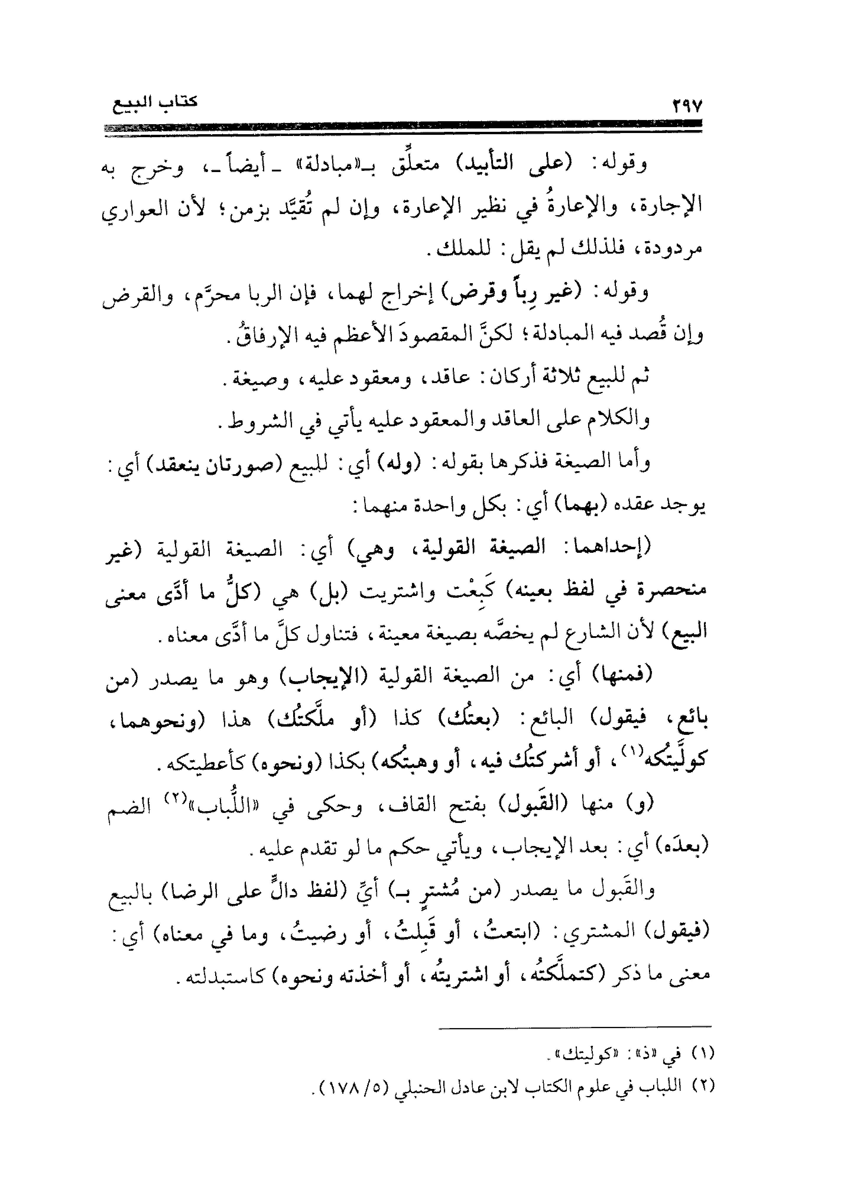 وأما الصيغة فذكرها بقوله: (وله) أي: للبيع (صورتان ينعقد) أي: يوجد عقده (بهما) أي: بكل واحدة منهما: