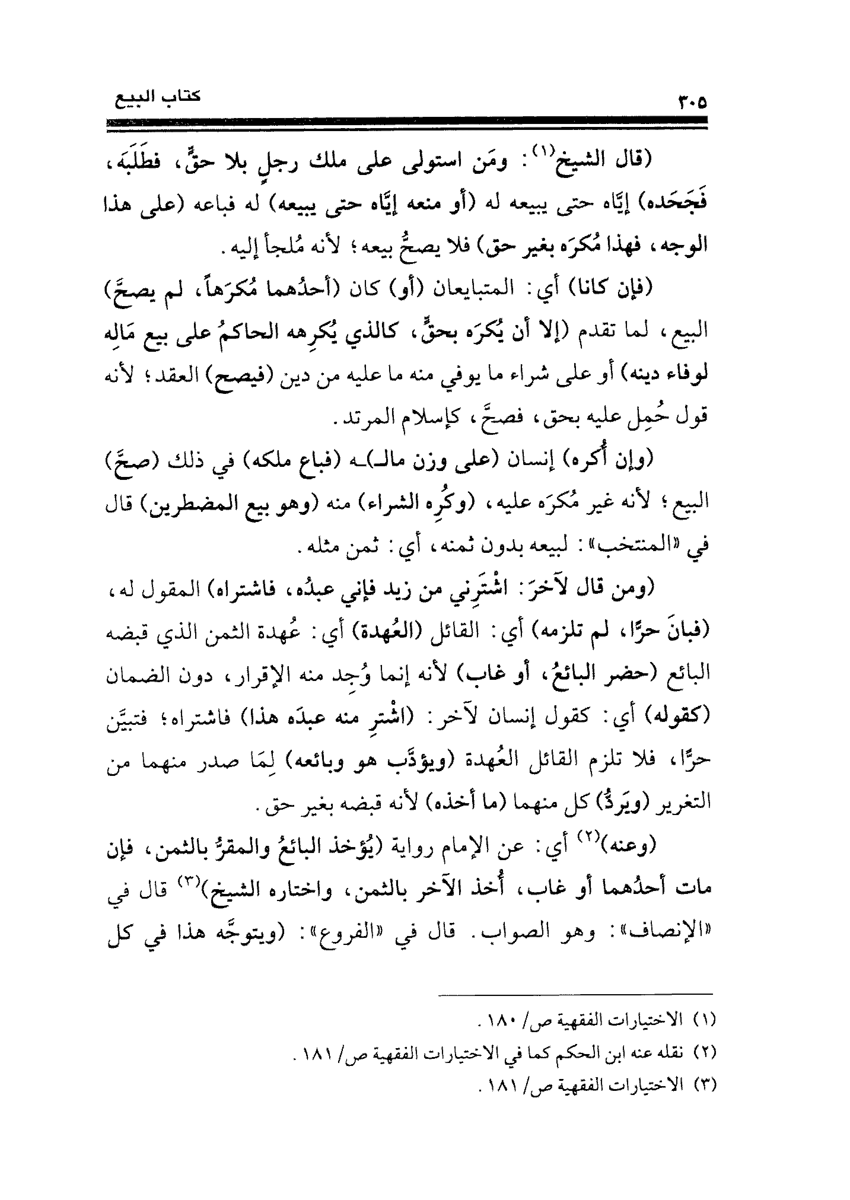 (¬٣) الاختيارات الفقهية ص / ١٨١.