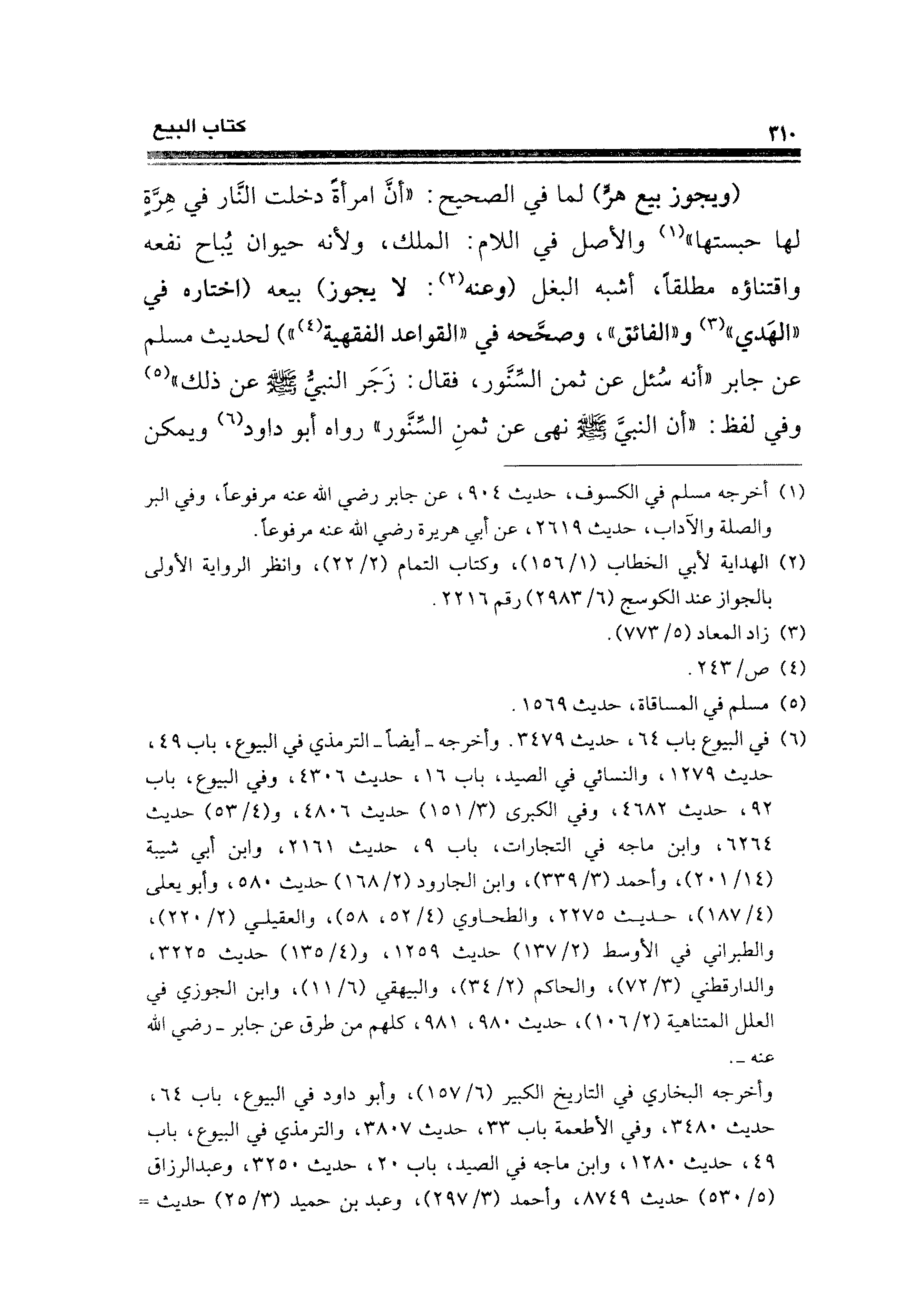 (ويجوز بيع هرٍّ) لما في الصحيح: "أنَّ امرأةً دخلت النَّار في هِرَّةٍ لها حبستها" (¬١) والأصل في اللام: الملك، ولأنه حيوان يُباح نفعه واقتناؤه مطلقًا، أشبه البغل (وعنه (¬٢): لا يجوز) بيعه (اختاره في "الهَدي" (¬٣) و"الفائق"، وصحَّحه في "القواعد الفقهية (¬٤) ") لحديث مسلم عن جابر "أنه سُئل عن ثمن السِّنَّور، فقال: زَجَر النبيُّ - صلى الله عليه وسلم - عن ذلك" (¬٥) وفي لفظ: "أن النبيَّ - صلى الله عليه وسلم - نهى عن ثمنِ السِّنَّور" رواه أبو داود (¬٦) ويمكن