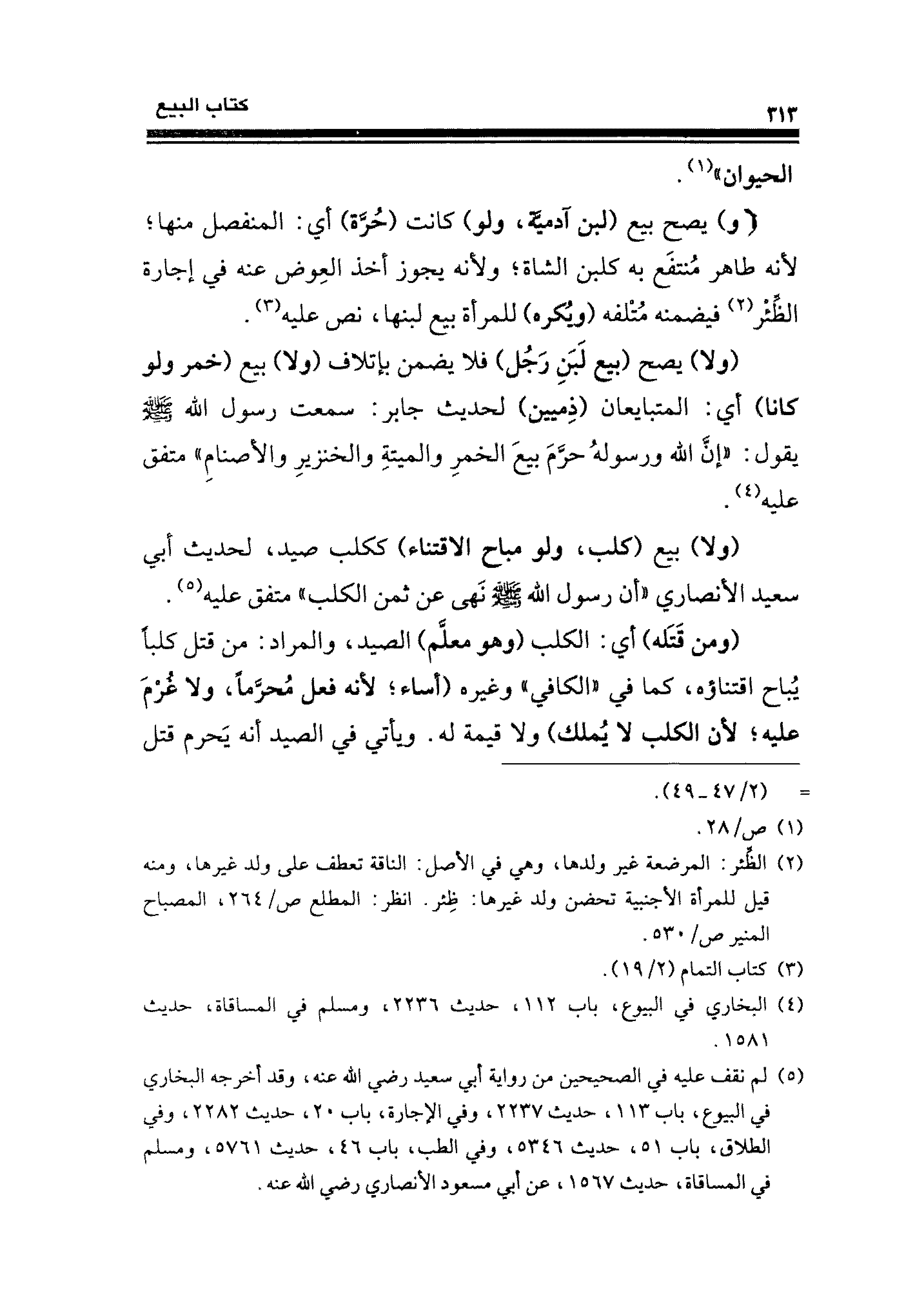 (¬٥) لم نقف عليه في الصحيحين من رواية أبي سعيد رضي الله عنه، وقد أخرجه البخاري في البيوع، باب ١١٣، حديث ٢٢٣٧، وفي الإجارة، باب ٢٠، حديث ٢٢٨٢، وفي الطلاق، باب ٥١، حديث ٥٣٤٦، وفي الطب، باب ٤٦، حديث ٥٧٦١، ومسلم في المساقاة، حديث ١٥٦٧، عن أبي مسعود الأنصاري رضي الله عنه.