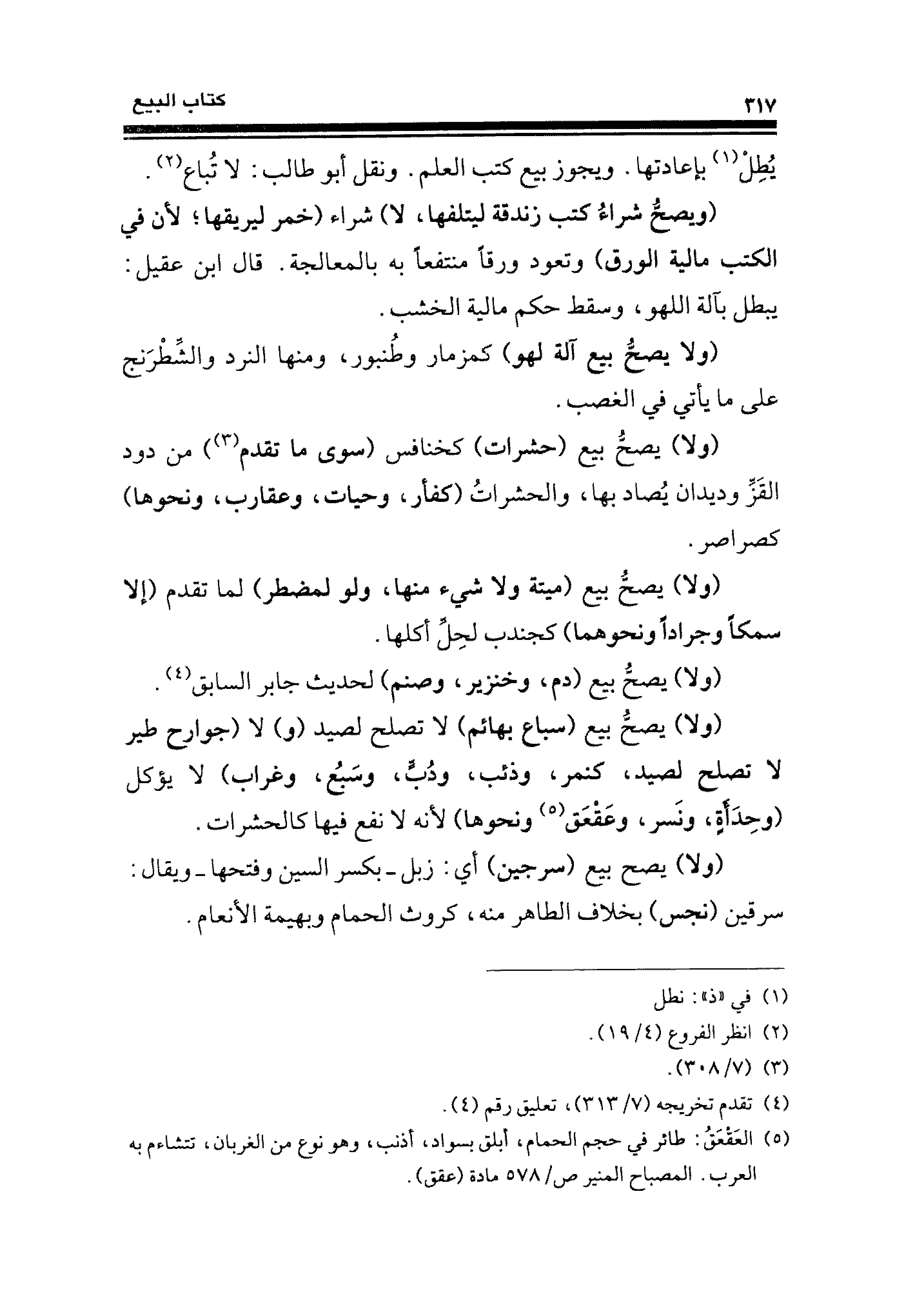 (ولا) يصحُّ بيع (حشرات) كخنافس (سوى ما تقدم (¬٣)) من دود القَزِّ وديدان يُصاد بها، والحشراتُ (كفأر، وحيات، وعقارب، ونحوها) كصراصر.